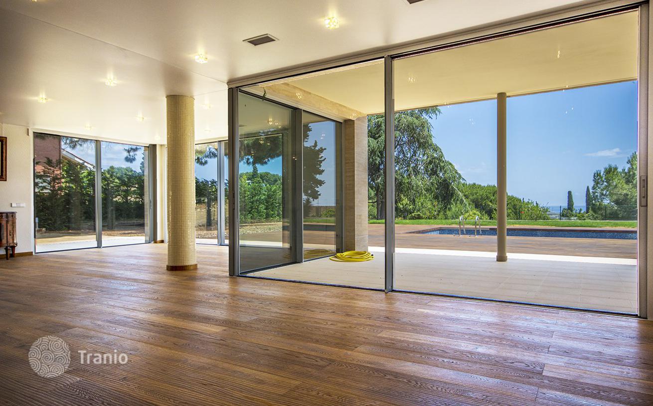 Современная архитектура, лаконичные линии, продуманная планировка, великолепное качество отделочных материаловСовременная архитектура, лаконичные линии, продуманная планировка, великолепное качество отделочных материалов, техническое оснащение, огромное количество естественного света благодаря панорамным окнам и ориентации на юг, прекрасное расположение полная приватность и конечно же вид на Средиземное море- вот основные характеристики этой виллы. Этот дом для продажи построен в 2017 году в самом престижном районе городка Кабрера де Мар с прекрасной коммуникацией с Барселоной посредством скоростной автомагистрали, примерно 25 минут, на абсолютно ровном участке 2166 м², площадь постройки 454,36 м². На первом этаже; гостиная- столовая с выходом на просторную террасу и в сад к бассейну 48 м², кухня открытого типа, прачечная, гостевой санузел и просторная спальня типа сьют с личной ванной комнатой и выходом на террасу и в сад. Поднявшись на второй этаж мы попадаем в спальную зону, где расположены основная спальня с гардеробной, личной ванной комнатой и еще две большие спальни типа сьют. Все спальни имеют выход на просторную террасу с фантастическим видом на море. Гараж на три машины. Оснащение: Фасад: Натуральный мрамор «Travertino Romano» Настил террас — плиточное покрытие Gres и тиковое дерево. Окна и балконные двери — алюминий, двойной стеклопакет, внутренние шторы с электроуправлением. Сигнализация и видео наблюдение по периметру участка, встроенная домотика («умный дом»). Ограждения террас и лестничные пролеты — нержавеющая сталь и стекло. Покрытие Timbertech (производства США) вокруг бассейна. Внутренняя отделка Напольное покрытие: натуральный дубовый паркет и мрамор Потолки натяжные (Франция) Двери – массивные лакированные двери испанского производства Магистральный газ отопление в спальнях батареи в ванных комнатах теплый пол. Централизованная система кондиционирования — горячий/холодный воздух «Mitsubishi». Кухня итальянской фирмы Scnaidero», столешница из Silestone, бытовая техника «Bosch», встроенная духовка и микроволновая печь, холодильник, витрокерамическая индукционная плита, посудомоечная машина. ПОДРОБНАЯ ИНФОРМАЦИЯ О ДОМЕ Бассейн (Хлор) Парковка (3) Вид На Море Вид На Горы Панорамные Виды Сигнализация Внешняя Сигнализация Бронированная Дверь Канализация Интернет Система Умный Дом Гардеробная Укомплектованная Кухня Кладовка Прачечная Камин Кондиционер