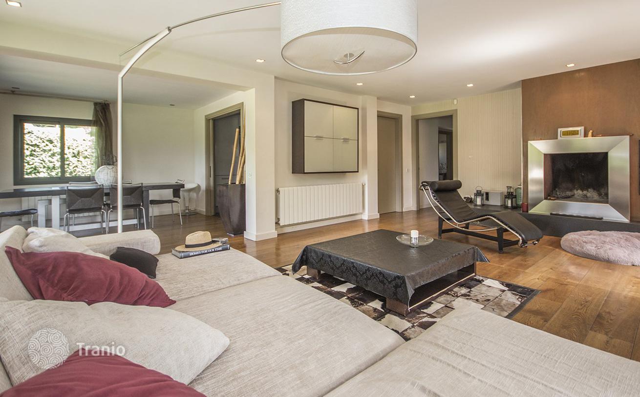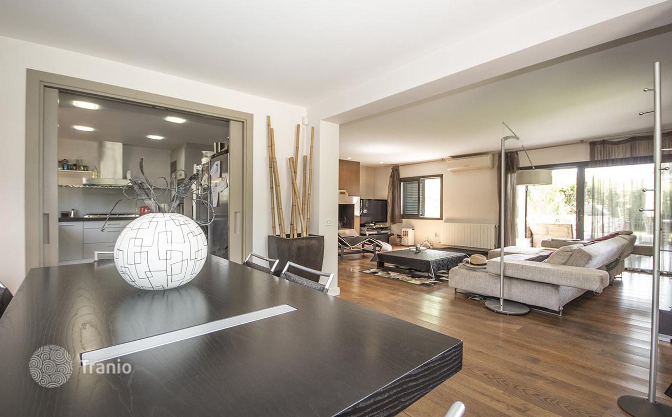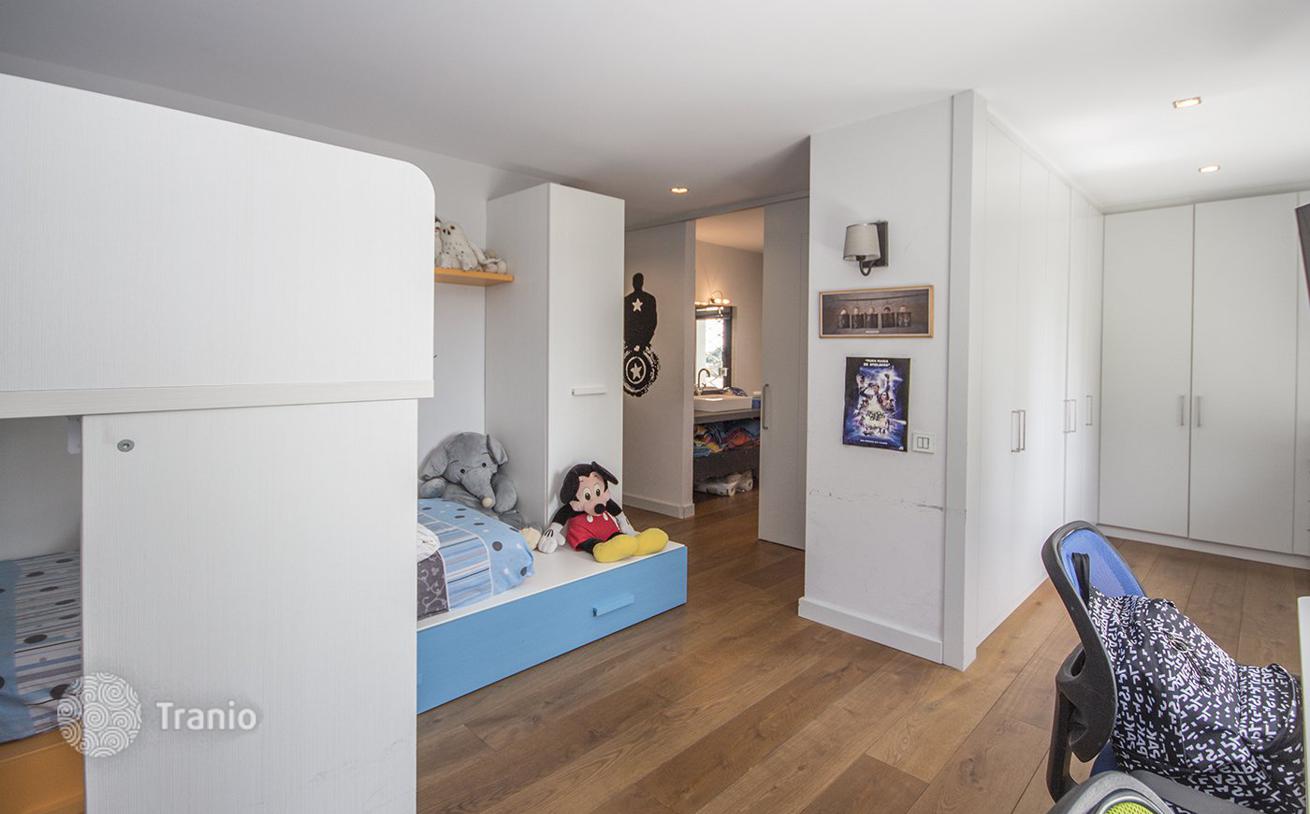 Гостиная, еще одно из наиболее важных мест в доме, имеет прямой выход на террасу и в сад, объединяя эти две зоны панорамными окнами. Теплые деревянные полы, тщательно продуманное освещение, великолепный камин и большая столовая, соединенная с практичной кухней; на этом же этаже мы находим две спальни и две ванные комнаты. На верхнем этаже расположена главная спальня с большой гардеробной и просторной ванной комнатой. С этого этажа открывается прекрасный вид на город и море.