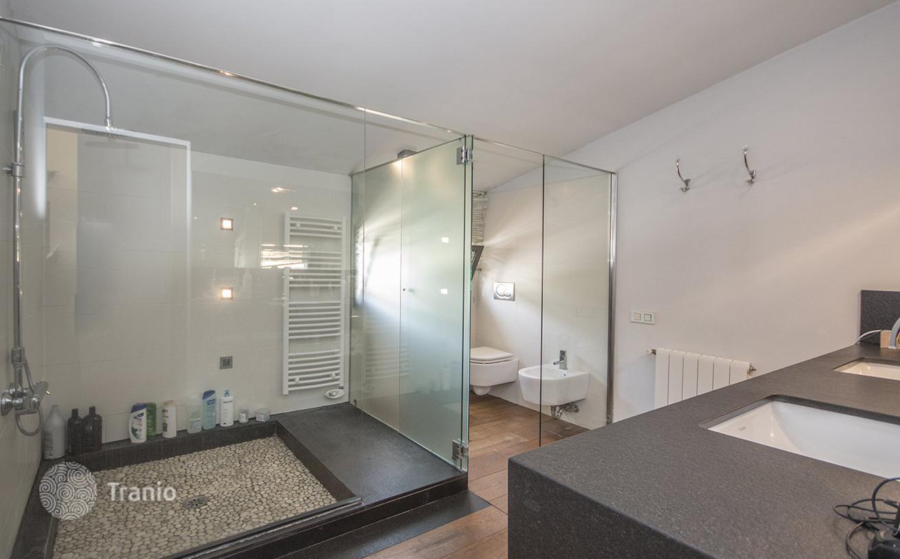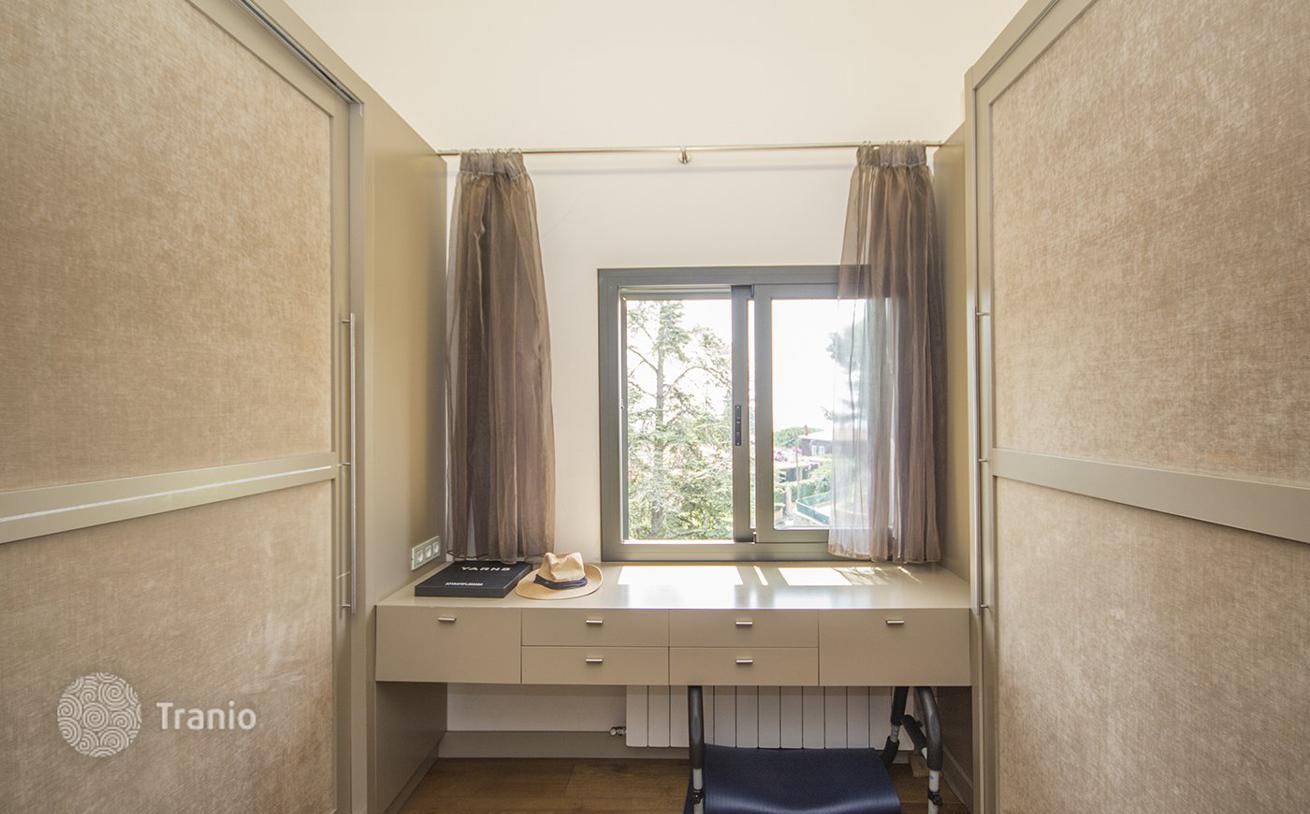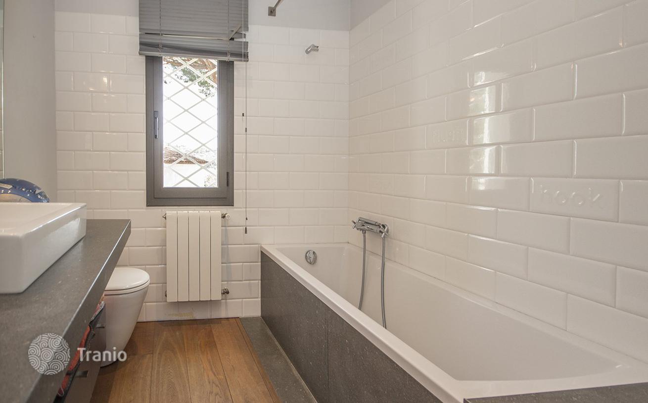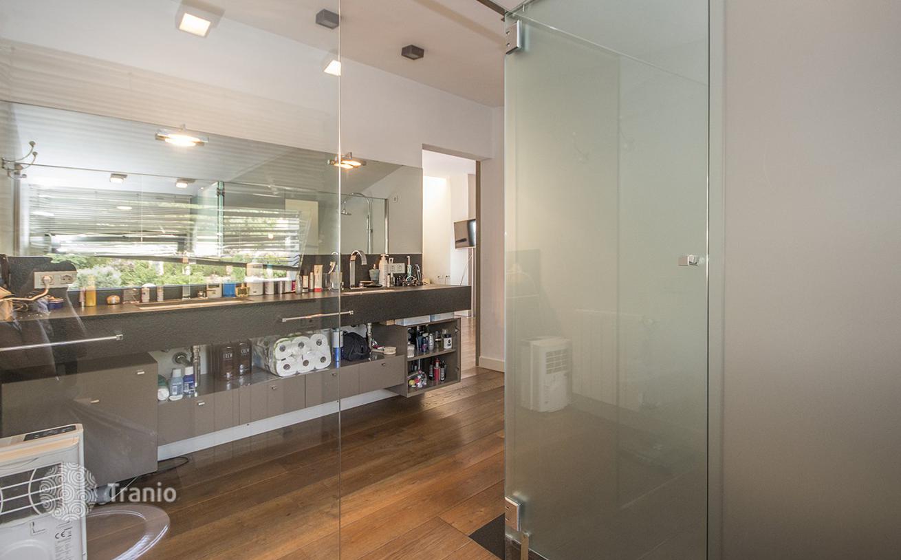 Гостиная, еще одно из наиболее важных мест в доме, имеет прямой выход на террасу и в сад, объединяя эти две зоны панорамными окнами. Теплые деревянные полы, тщательно продуманное освещение, великолепный камин и большая столовая, соединенная с практичной кухней; на этом же этаже мы находим две спальни и две ванные комнаты. На верхнем этаже расположена главная спальня с большой гардеробной и просторной ванной комнатой. С этого этажа открывается прекрасный вид на город и море.
