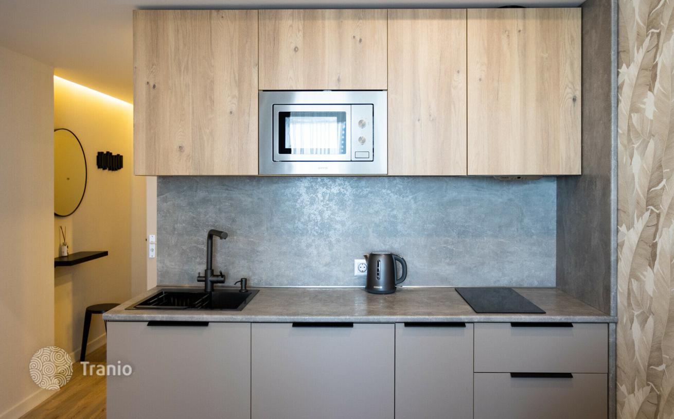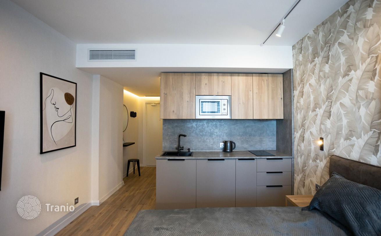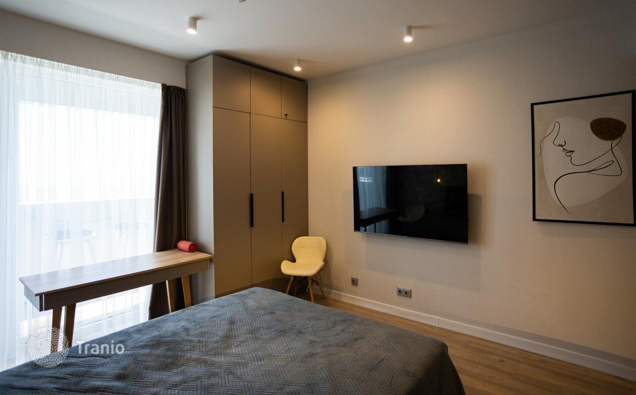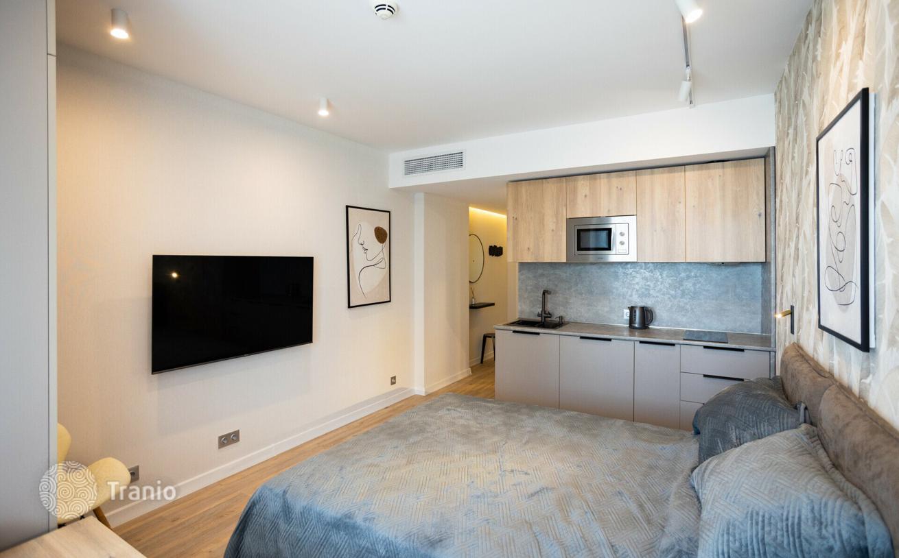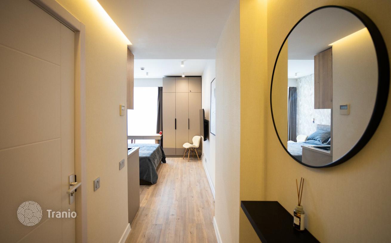 Продается прекрасная квартира-студия с одновременно потрясающим видом на море и город — площадью 30, 4 м² в одном из самых престижнейших жилых комплексов премиум-класса. Квартира расположена на улице ШерифаХимшиашвили 5, на 26 этаже 39-и этажного дома в 50 метрах от моря. Сделан прекрасный евро ремонт по индивидуальному дизайн проекту, из качественных материалов. Отличная шумоизоляция, дорогая система кондиционирования, панорамные окна с тройными стеклопакетами, теплые полы, газ, автономное отопление. Квартира полностью укомплектована премиальной мебелью и новой бытовой техникой. Есть все необходимое для комфортной жизни, отдыха в отпуске или сдачи в аренду: компактная кухня 9 м², большая светлая спальня студийного типа с выходом на просторный балкон, компактная гардеробная, прихожая и санузел.