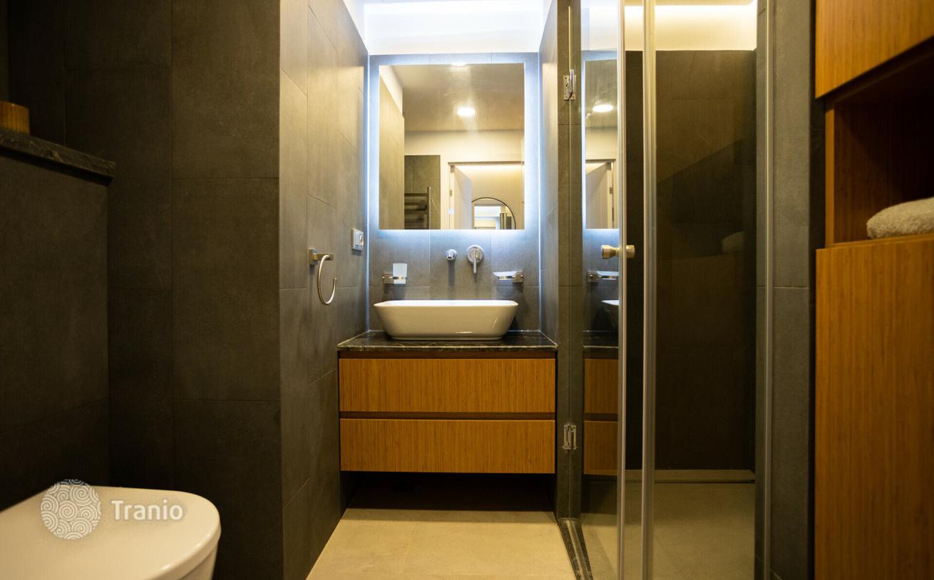 Вид из панорамных окон позволяет видеть море и центр города одновременно, особенно красивые в вечернее время. В доме есть 4 пассажирских лифта, холл с современным интерьером и охраной, ведется видеонаблюдение, осуществляется техническое обслуживание. Имеется многоуровневый подземный паркинг, казино, закрытый и открытый бассейн, спа и фитнес зал. В обустроенном дворе спортивная и детская площадки, зоны для отдыха, открытый паркинг для жильцов и их гостей.