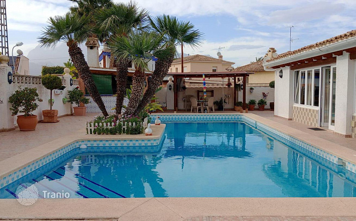 Большая отдельная вилла в роскошной урбанизации Рокас Бланкас с частным бассейном и большим участком. Вилла расположена в районе Бенидорма Ринкон де Лойкс Илана, площадь дома 486.00 м на ровном участке 700 м². Дом состоит из трех этажей. Цокольный этаж 200 м² с гаражом для нескольких автомобилей, также есть винный погреб, библиотека, спальня, ванная комната, кладовая. Главный этаж 200 м² предлагает просторную гостиную с обеденной зоной, отдельную кухню, 2 застекленные террасы с выходом к бассейну, главную спальню с ванной комнатой, галерею-прачечную. На втором этаже 80 м² расположены 3 спальни, 2 ванные комнаты и несколько террас с видами на Бенидорм и горы. Участок с плиткой, цветником и простыми в уходе растениями, частный бассейн с душем, крытая летняя кухня с барбекю и обеденной зоной. Дом отремонтирован, встроенная кухня, деревянная внутренняя отделка, ориентация на юго-восток, кафельные и паркетные полы, двойное остекление, внешняя отделка. Отопление с кондиционером и газом во всем доме. Дополнительно: вода, кондиционер, встроенные шкафы, барбекю, горячий и холодный насос, отопление, камин, кладовая, сад, яркий, светлый, собственный бассейн, терраса, застекленная терраса, кладовая, автобусы, центральный, торговые центры, школы, побережье, больницы, горы, супермаркеты, урбанизация, огорожен, открытый вид, проход, частный гараж (на несколько машин). Коммунальные платежи: 550 €/год…