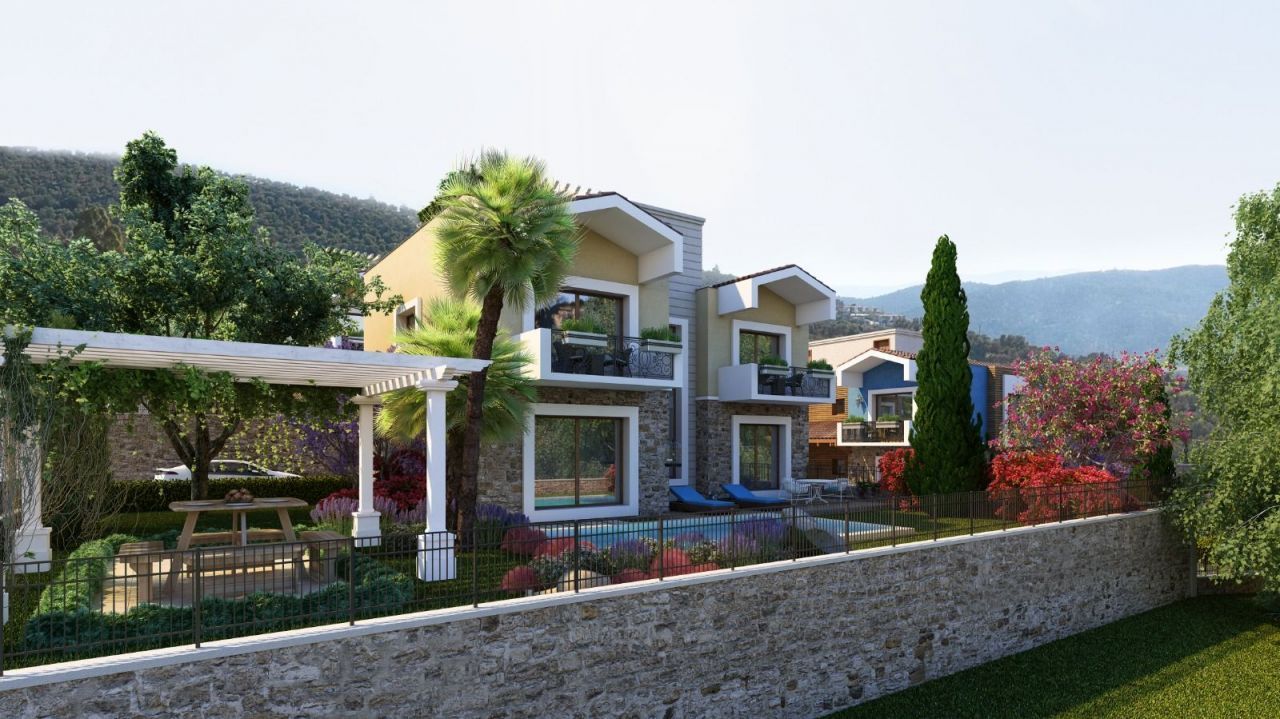 Продаётся новый дом в городе Бодрум, Турция. Общая площадь составляет 107 квадратных метров. В доме имеется 2 комнаты, что делает его идеальным для небольшой семьи или пары.