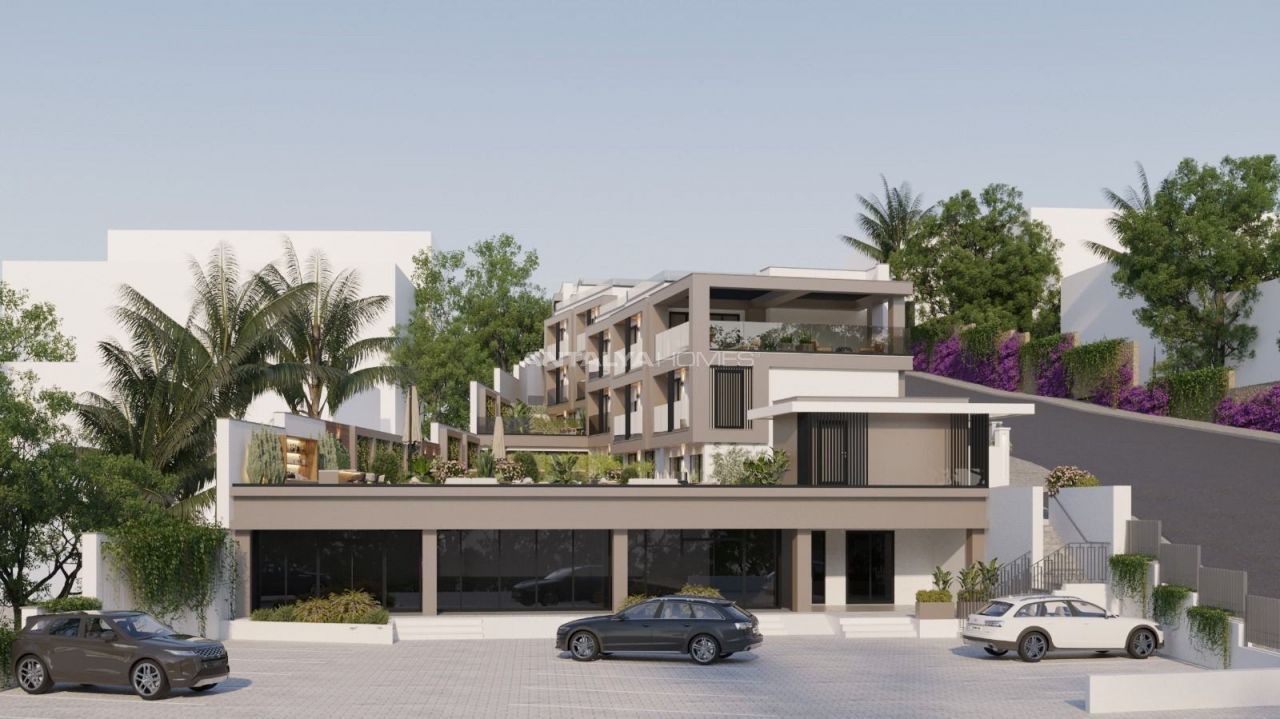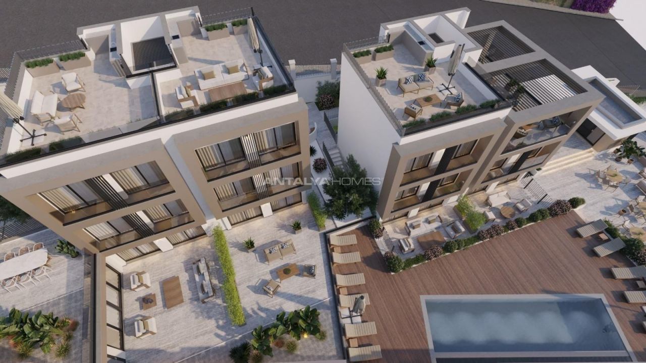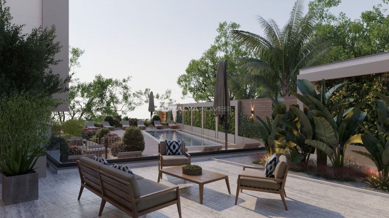 Квартира также имеет балкон и террасу, откуда открывается прекрасный вид на море, горы и бассейн. Вы сможете наслаждаться красивыми пейзажами прямо из своего дома.
