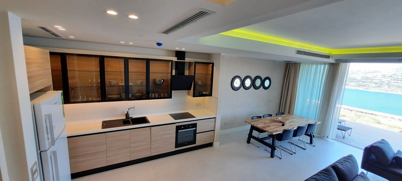 Кроме того, дом оснащен 2 ванными комнатами, что обеспечивает удобство и комфорт для всех жильцов. Адрес дома находится в престижном районе Ялыкавак, Бодрум, Турция. Это место, где вы сможете наслаждаться красотой природы и спокойствием.