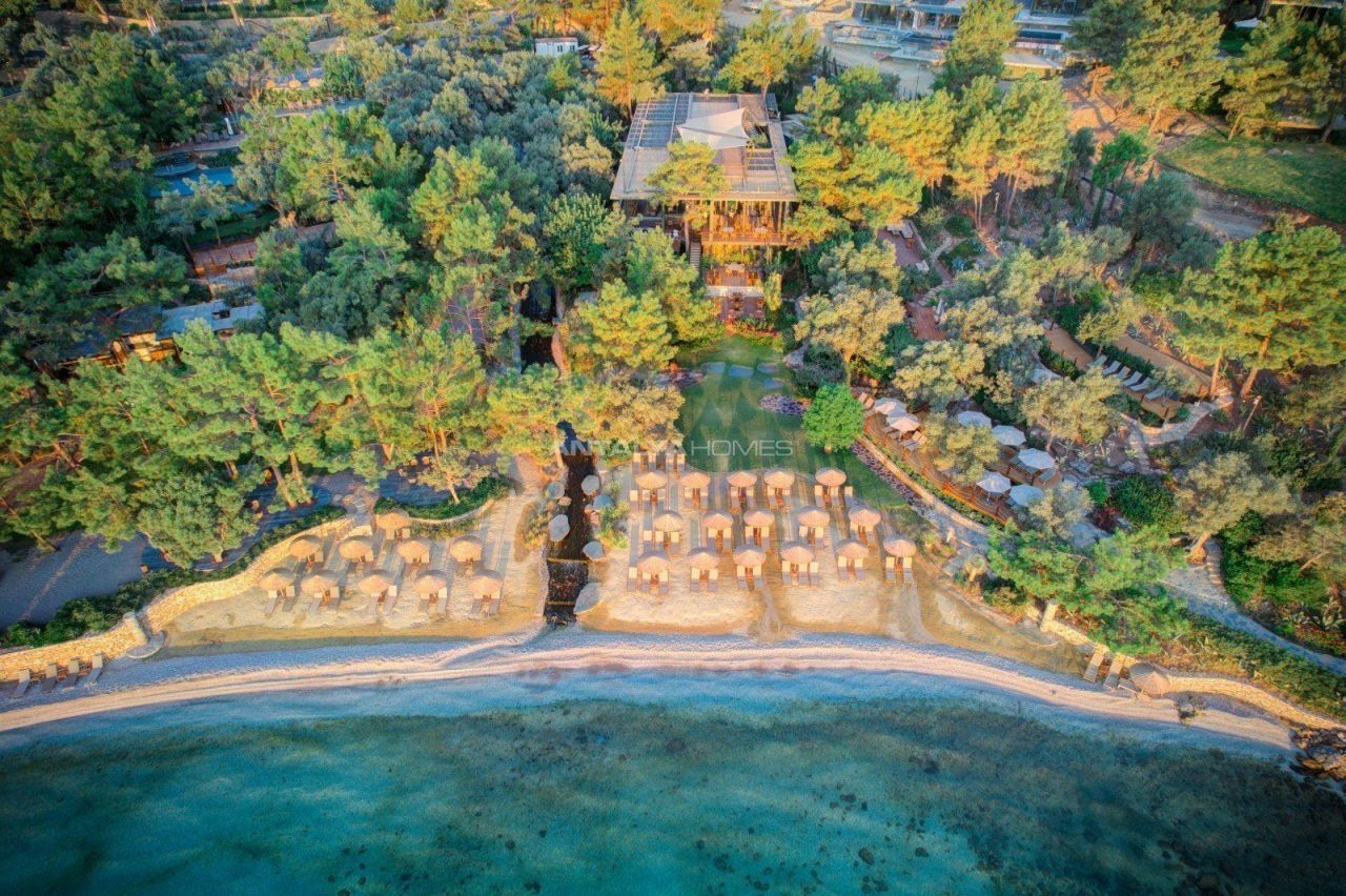 Дополнительные преимущества включают теплые полы, встроенную кухню, гардеробную, террасу с панорамными окнами и великолепным видом на море. Также вы сможете насладиться собственным пляжем, где сможете проводить время с семьей и друзьями. В жилом комплексе также имеется зеленая зона, где вы сможете наслаждаться природой и проводить время на свежем воздухе.