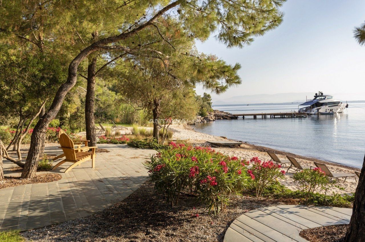ресторан, парковка, детская площадка, охрана, видеонаблюдение, интернет, спутниковое телевидение, кондиционеры, теплые полы, встроенная кухня, гардеробная, терраса, панорамные окна, вид на море, собственный пляж, зеленая зона, барбекю, сад, спортивные площадки.