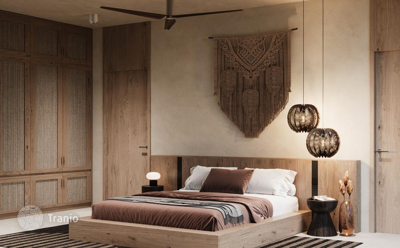 Дизайн выполнен в теплых тонах с использованием натуральных материалов, таких как камень и дерево, которые создают атмосферу тепла и уюта. Это идеальный выбор для тех, кто ценит натуральность и экологичность.