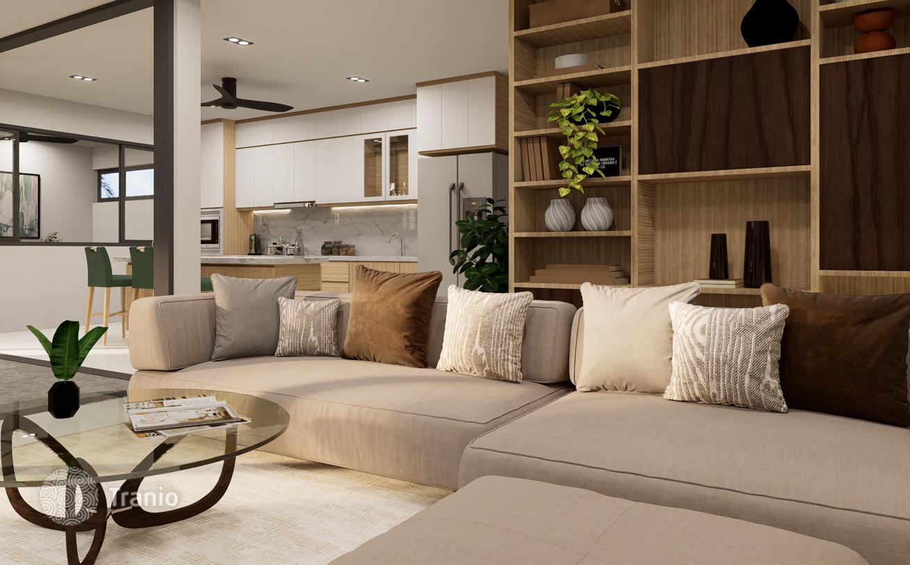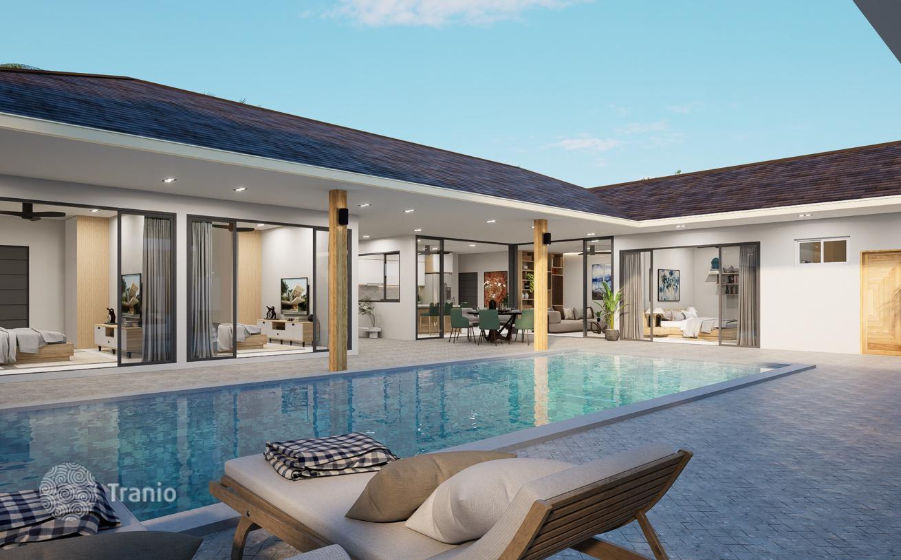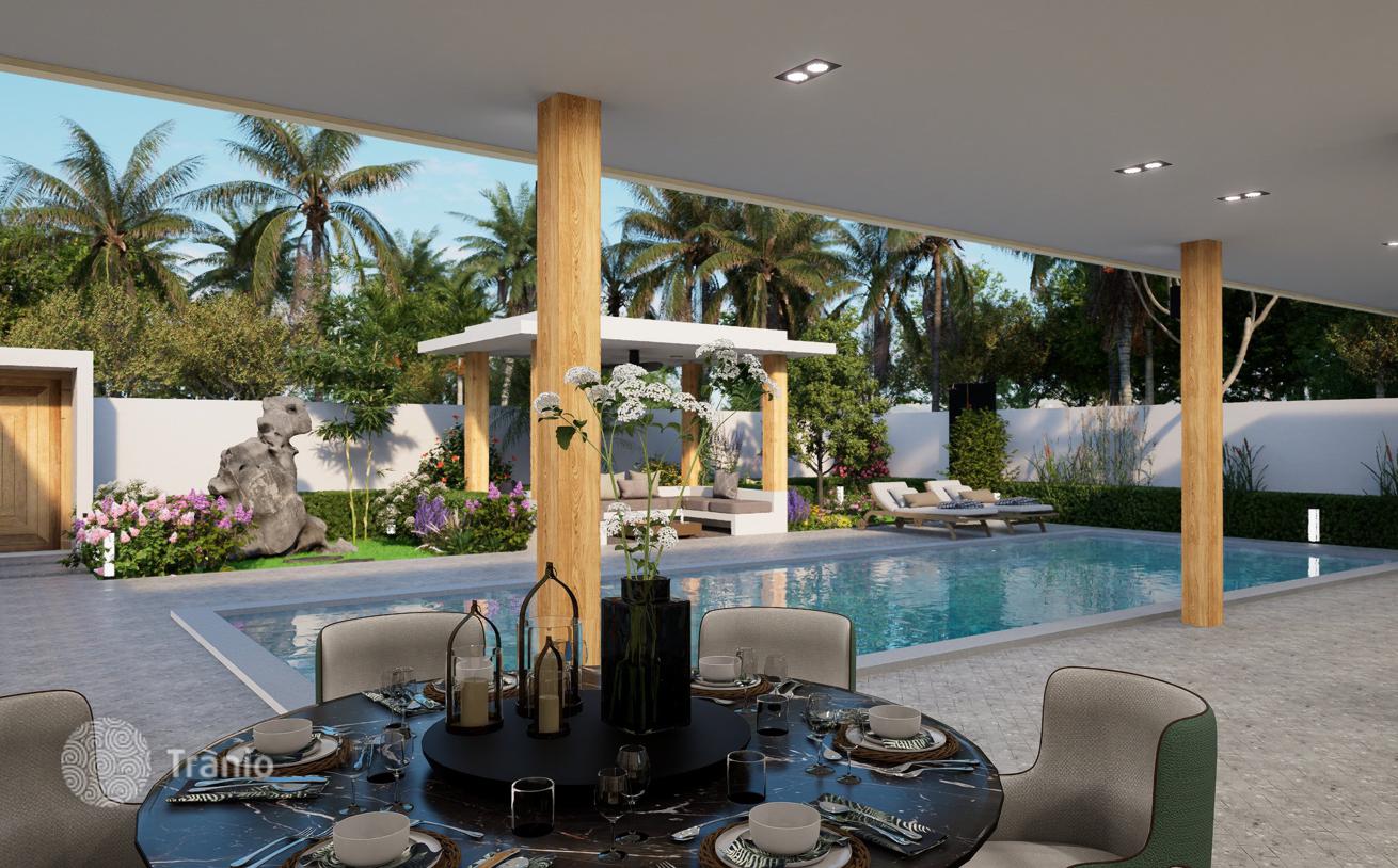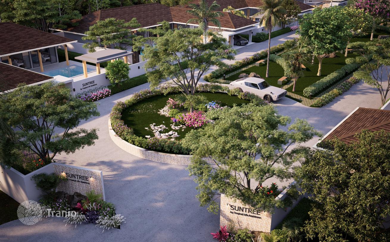 Современный жилой комплекс будет состоять из общей зелёной зоны в центре и 8 домов, каждый с личным бассейном, беседкой, душем на открытом воздухе, парковкой.