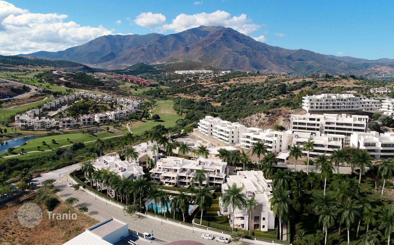 Из апартаментов открывается вид на море, гольф-поле и горы.
