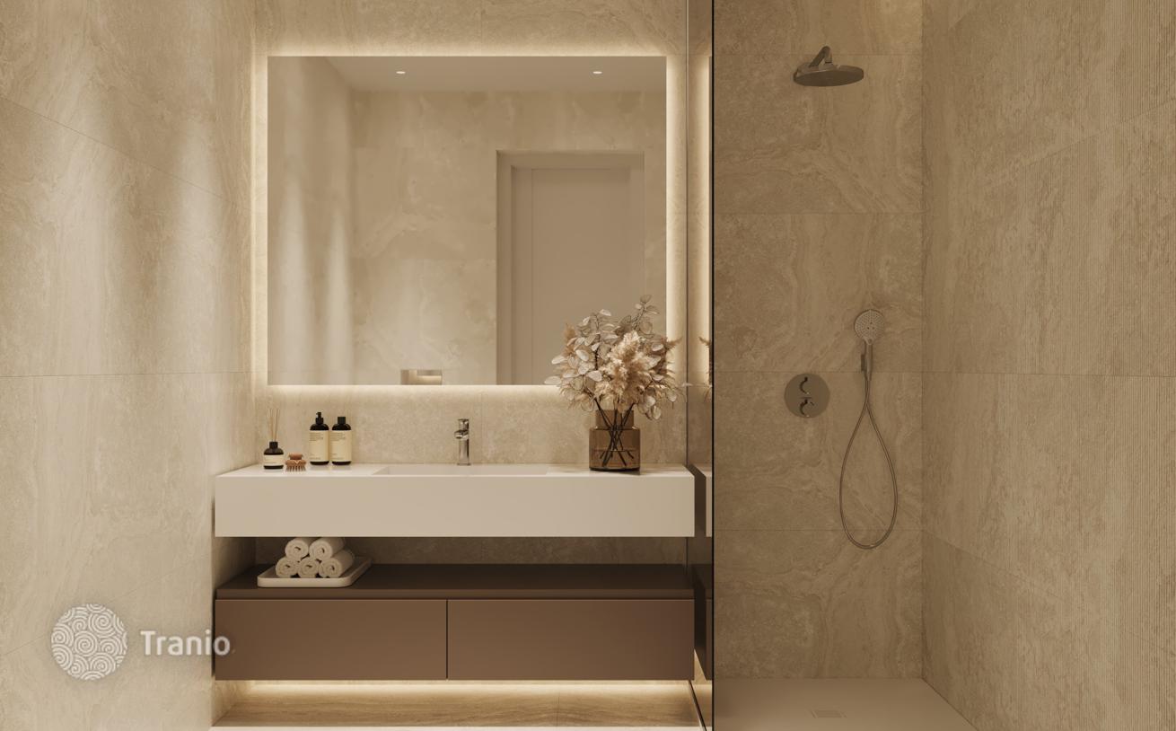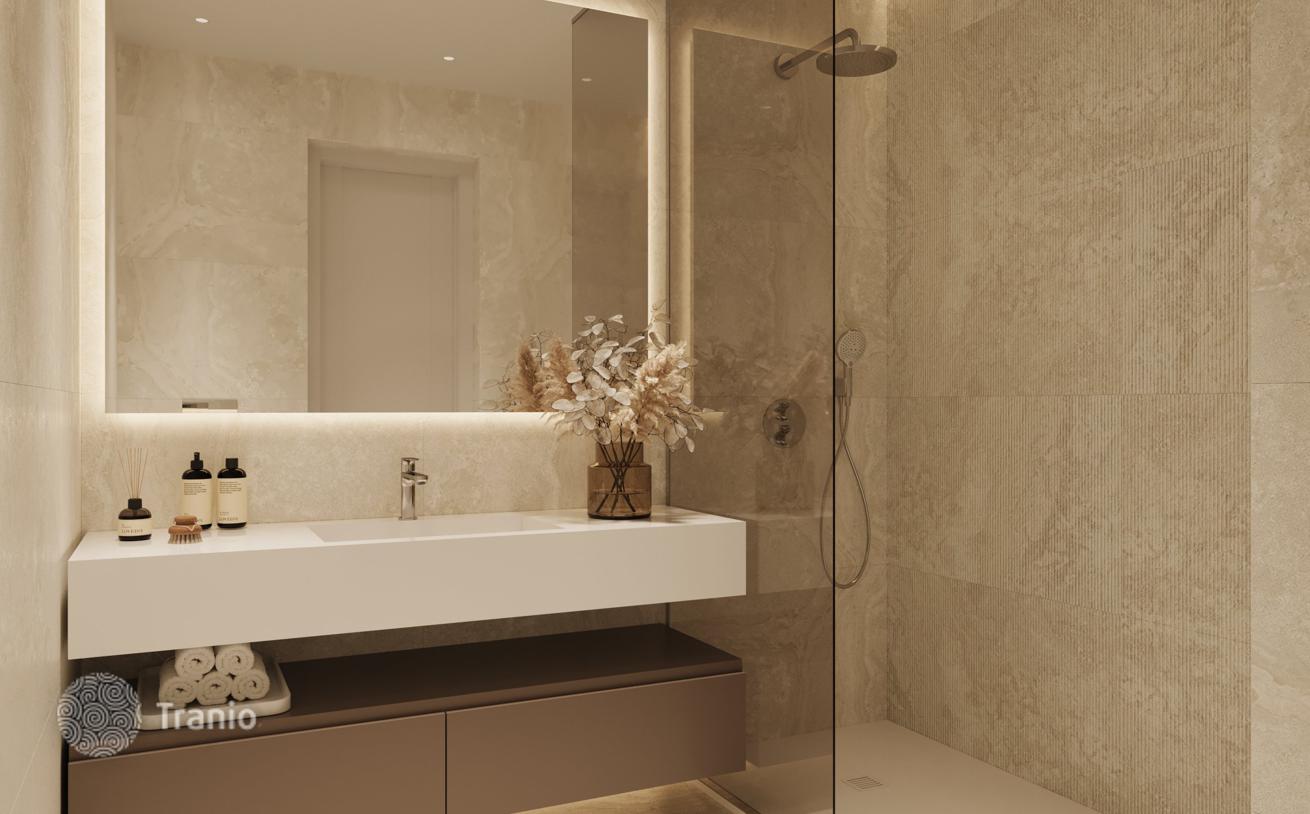 16 квартир с одной спальней и 32 квартиры с 2 спальнями, из них: 19 квартир с садом и 8 пентхаусов с солярием.