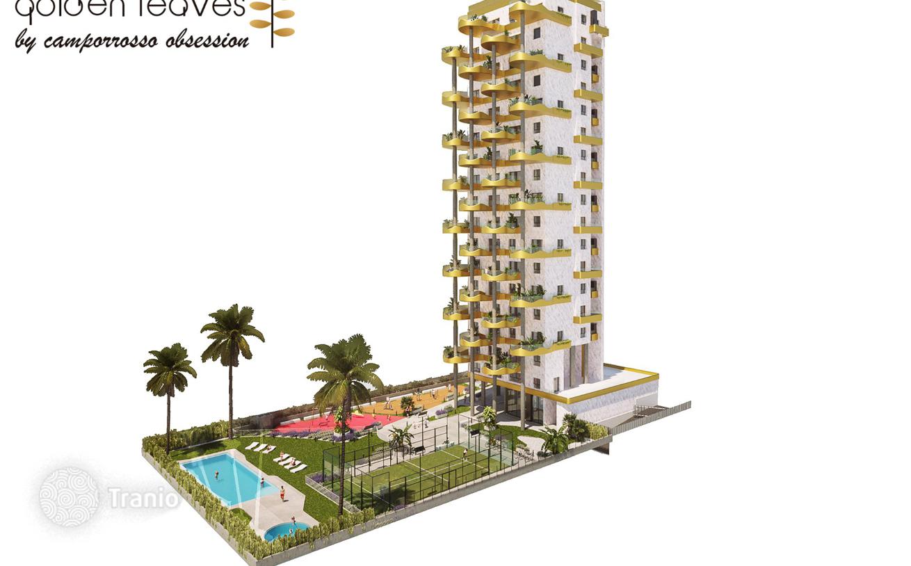 Дизайн этого здания отличается исключительной эстетикой: террасы имитируют листья. В каждой квартире есть большая терраса, с которой открывается круговой вид на все лучшее в Кальпе: пляж Ареналь, пляж Фосса, лагуну Лас-Салинас и, конечно же, Пеньон‑де-Ифач. Кроме того, здесь есть бассейн, теннисный корт, тренажерный зал, зона для художественной гимнастики и детских игр в просторных помещениях общего пользования.