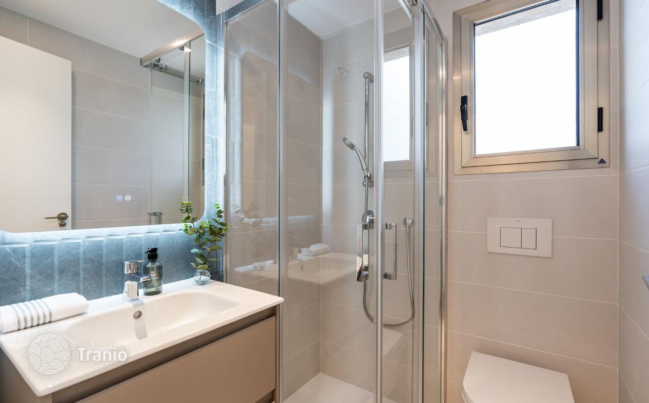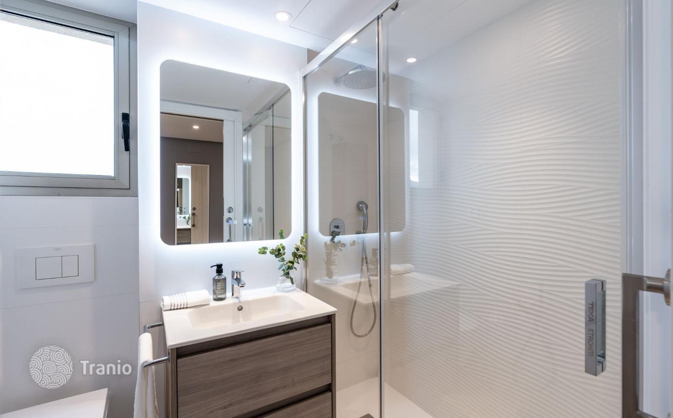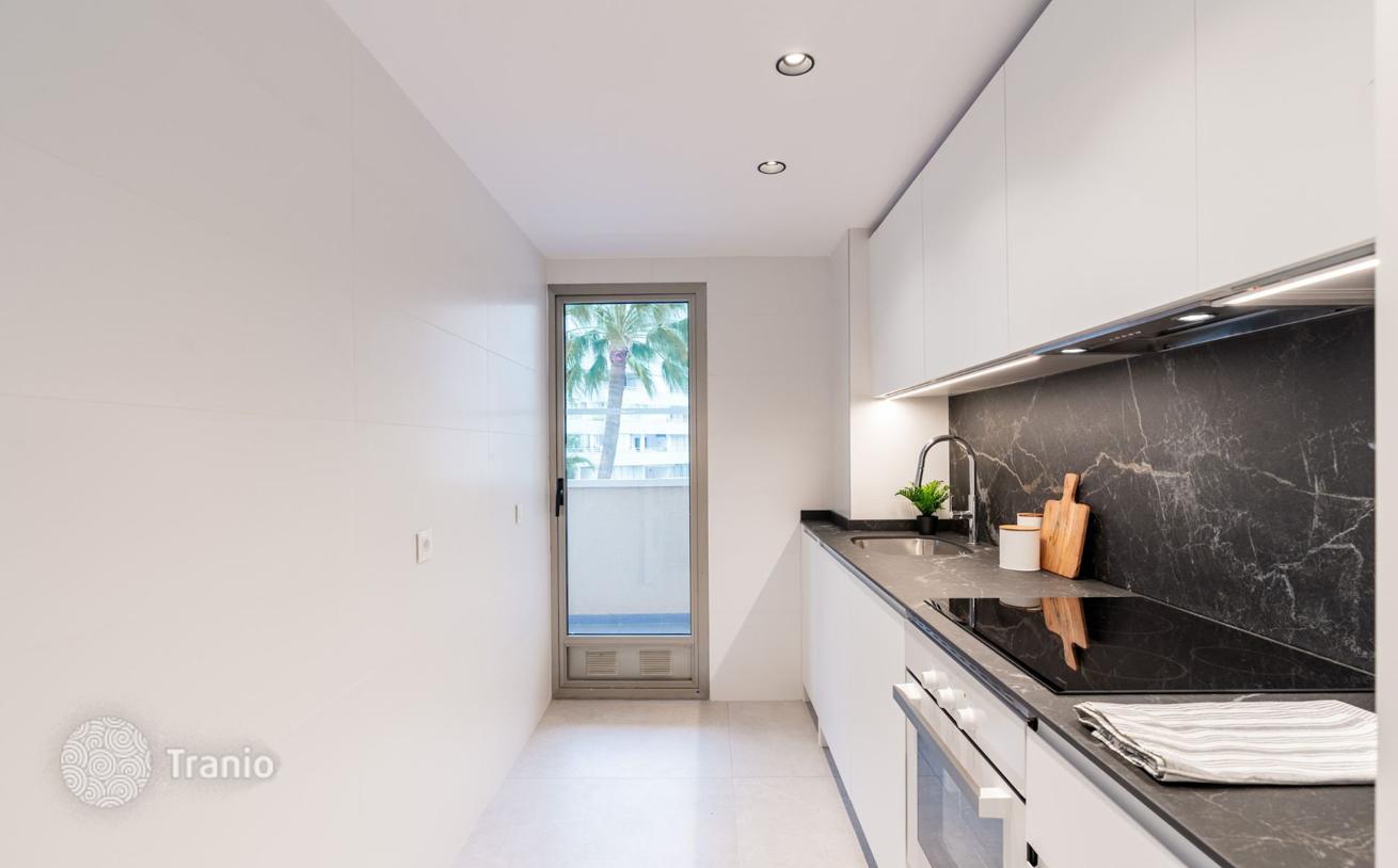 Планировка — из коридора есть вход в главный зал, две спальни с двуспальными кроватями (одна из них с собственной ванной комнатой), полностью оборудованную отдельную кухню с выходом на очень светлую галерею, ванную комнату с ванной и, наконец, есть терраса площадью 33 м².