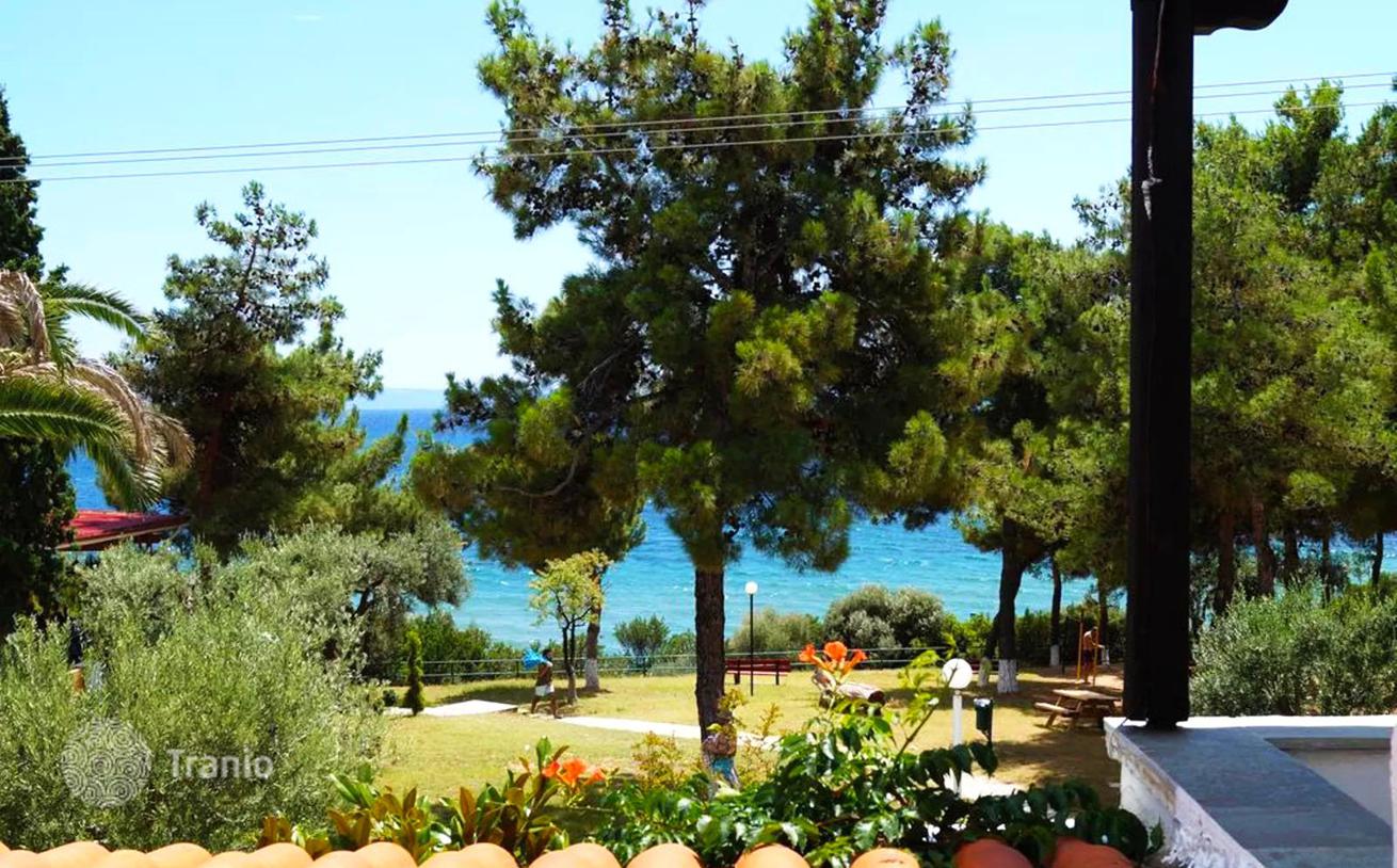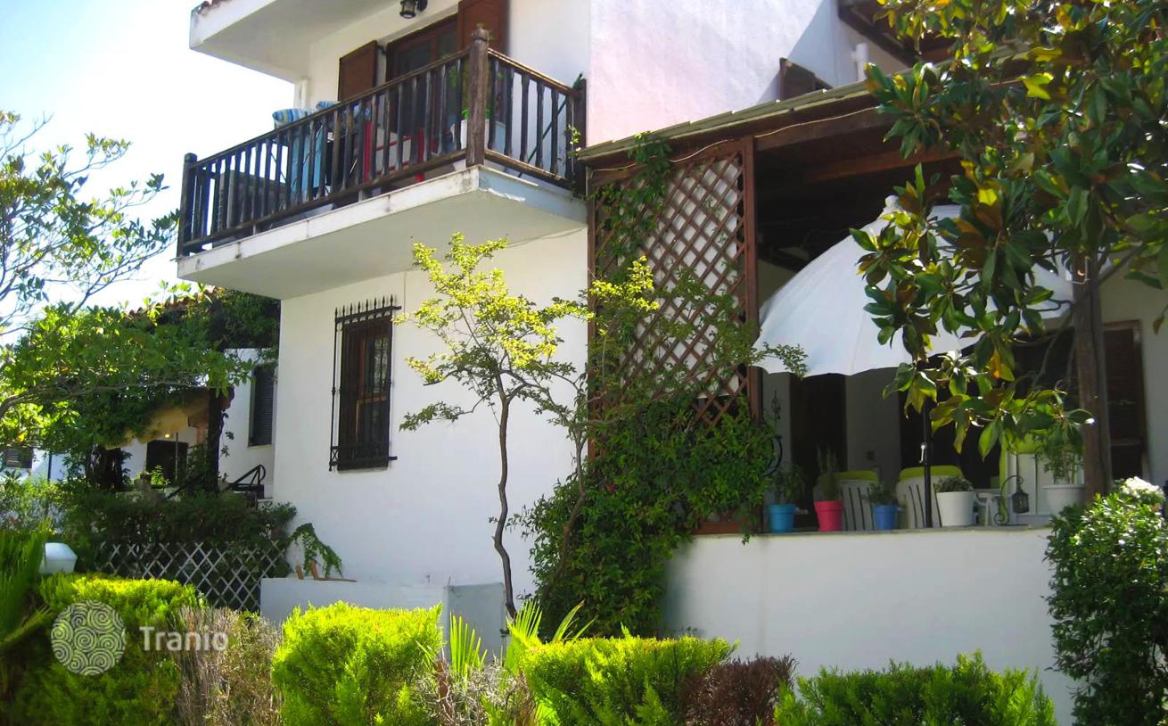 Великолепная мезонета расположена в живописном курортном месте Геракини, утопающем в зелени холмов полуострова Халкидики. Дизайн экстерьера в белых тонах придает дому особую величественность. Тенистая аллея, ведущая к мезонете, гармонично вписывается в ее архитектуру и подчеркивает красоту открывающихся пейзажей. При входе на территорию дома, Вы заметите красивый сад с ухоженным зелёным газоном и раскидистыми пальмами. Мезонета располагается на 2 уровнях. Первый этаж состоит из гостиной с камином совмещенной с кухней, одной спальни, интегрированной в гостиную и отделенной раздвижной перегородкой, одной ванной комнаты и санузла. Деревянная внутренняя лестница ведет на второй этаж, где находятся две другие спальни. Имеется складское помещение. Дом оснащен бронированными дверями, верандой, системами кондиционирования и автономного отопления. Мезонета расположена прямо на берегу, открывая взору фантастический вид на морские просторы и удивительные закаты.