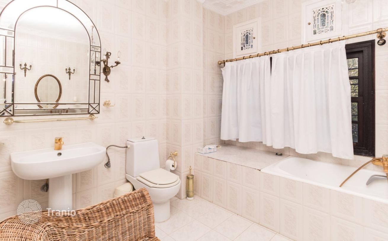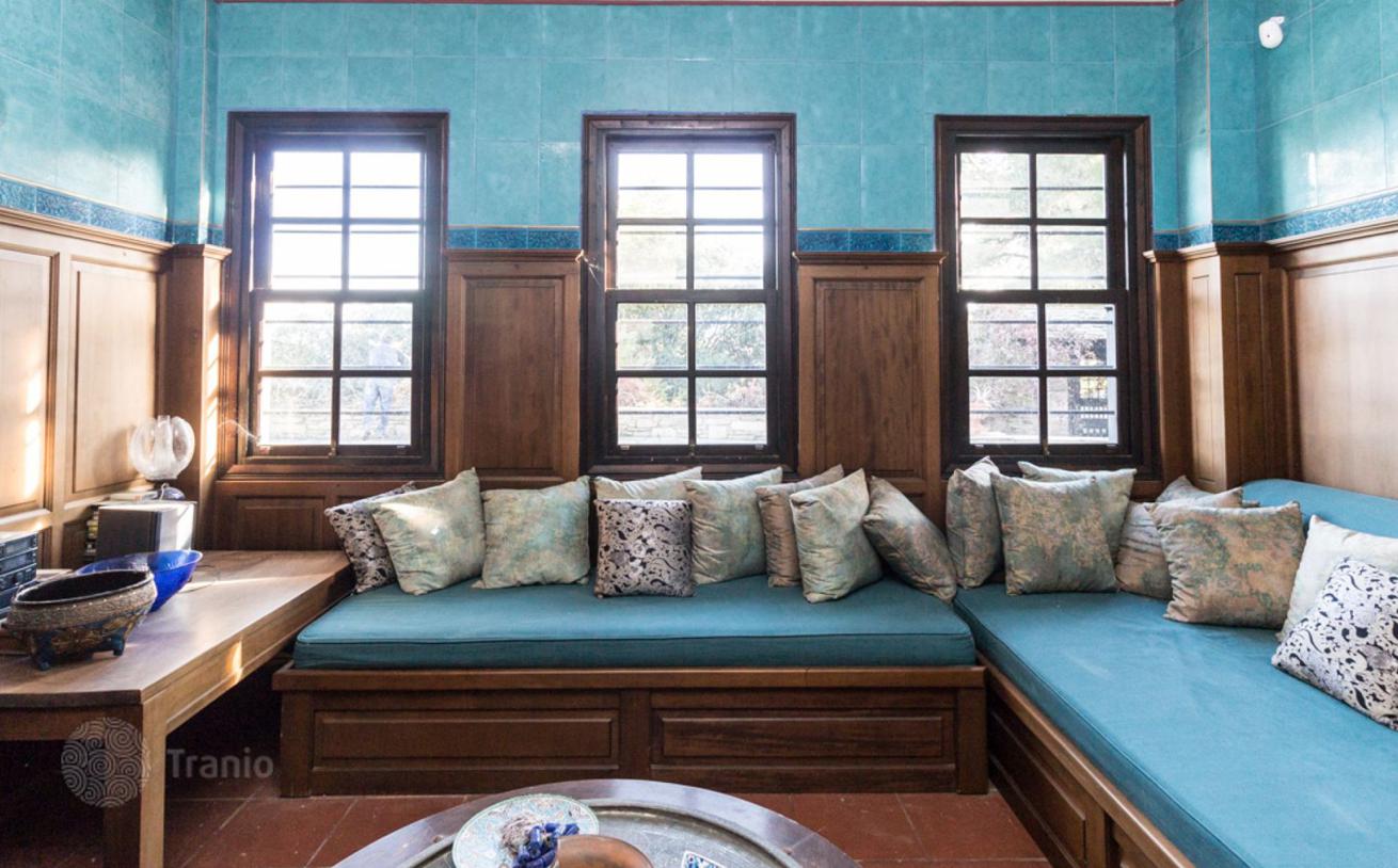 Дом состоит из трех гостиных, просторной кухни, четырех спален, четырех ванных комнат, трех туалетов и двух кладовых комнат.