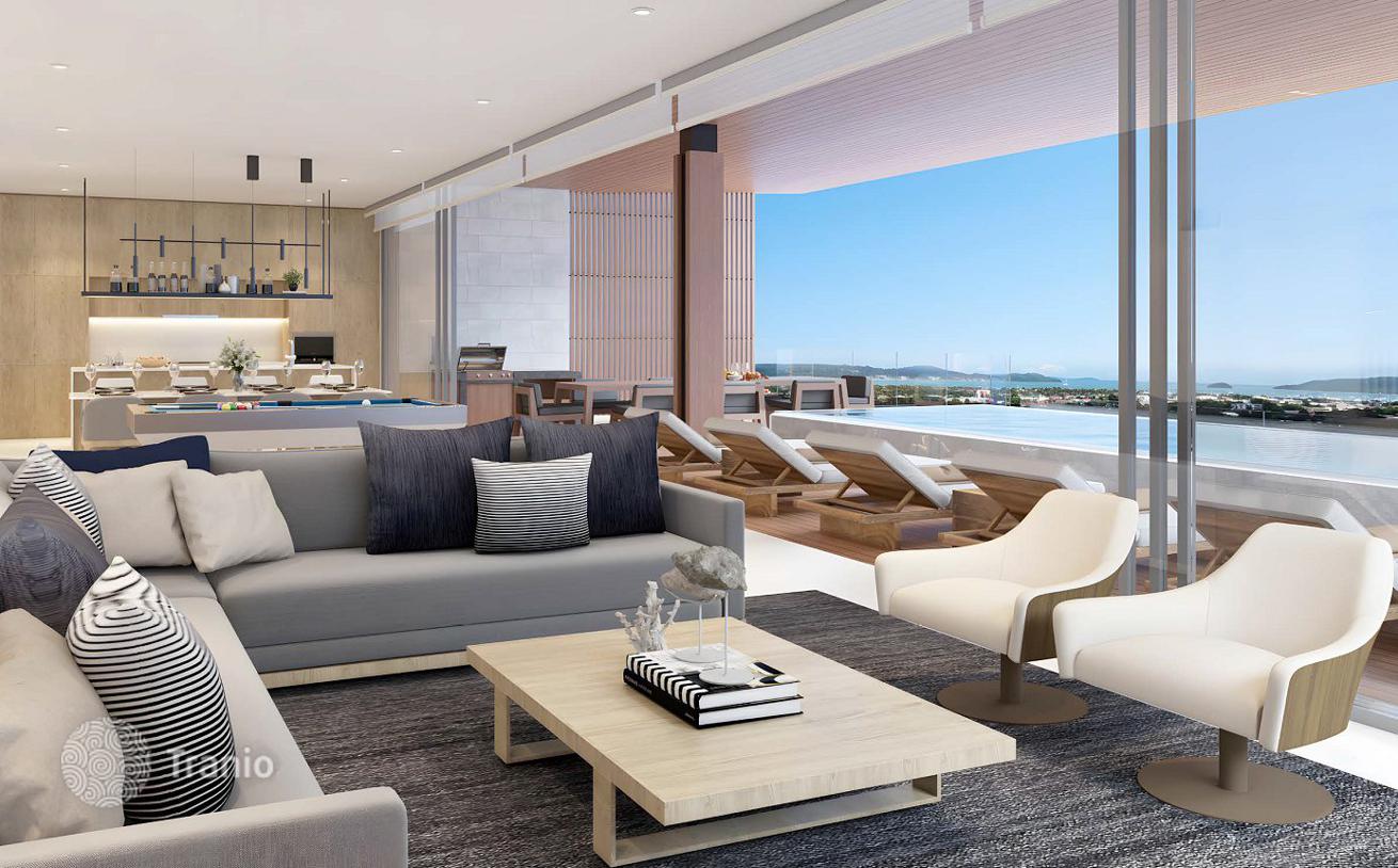 Предлагаются виллы с бассейнами, парковочными местами и панорамным видом на море и сад.