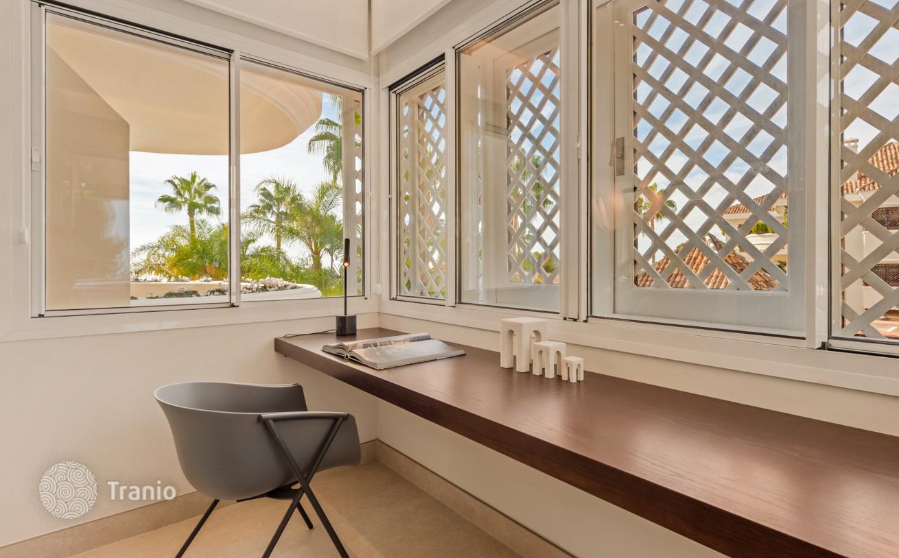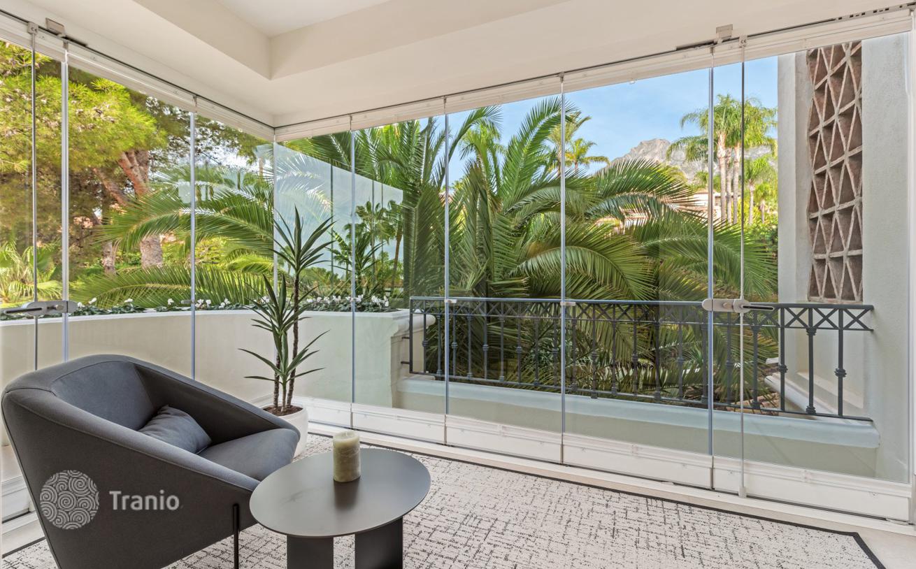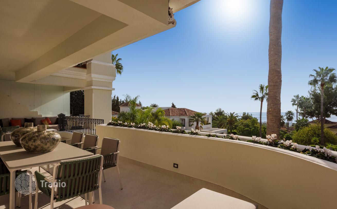 Дуплекс на продажу в Altos Reales, Marbella Golden Mile, с 3 спальня, 2 ванная, Здание было построено в 1998 и характеристики бассейн (общий), гараж (общий) и сад (общий). Что касается собственности размеры, он имеет 219 m² построенный, 137 m² интерьер, 82 m² терраса. Этот объект, с ориентацией юго-запад, имеет следующие возможности: Рядом с магазинами, Рядом со школой, Помещение для офиса, Камин, Кладовое помещение, Столовая, Круглосуточная охрана, Собственная терраса, Гостиная, Культурно-бытовые объекты рядом, Вид на море, Подогрев полов по всему дому, Система Dolby Stereo Surround, Прачечная, Крытая терраса, Встроенные шкафы, Кондиционирование, Лифт, Вид на сад, Вид на бассейн, Панорамный вид, Открытая терраса, Отличное состояние и Недавно отремонтированный.