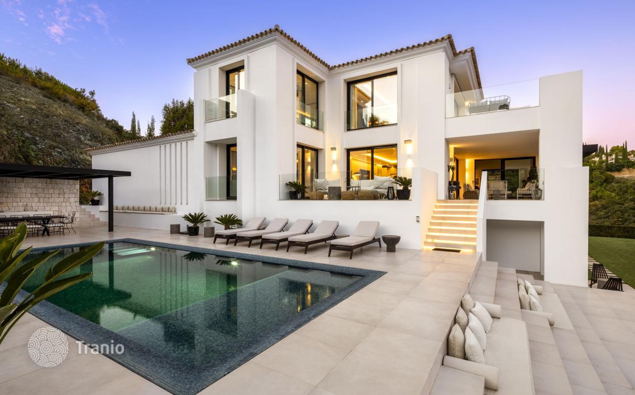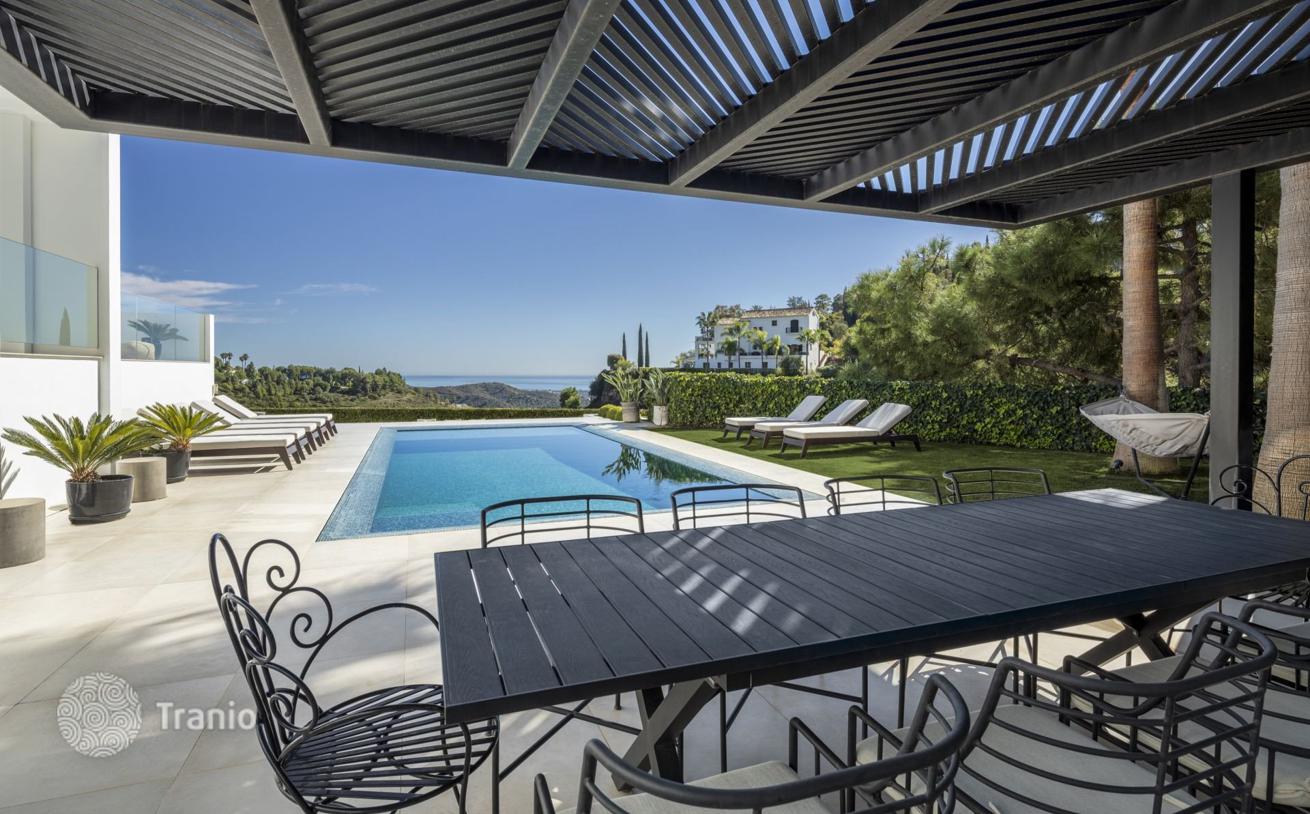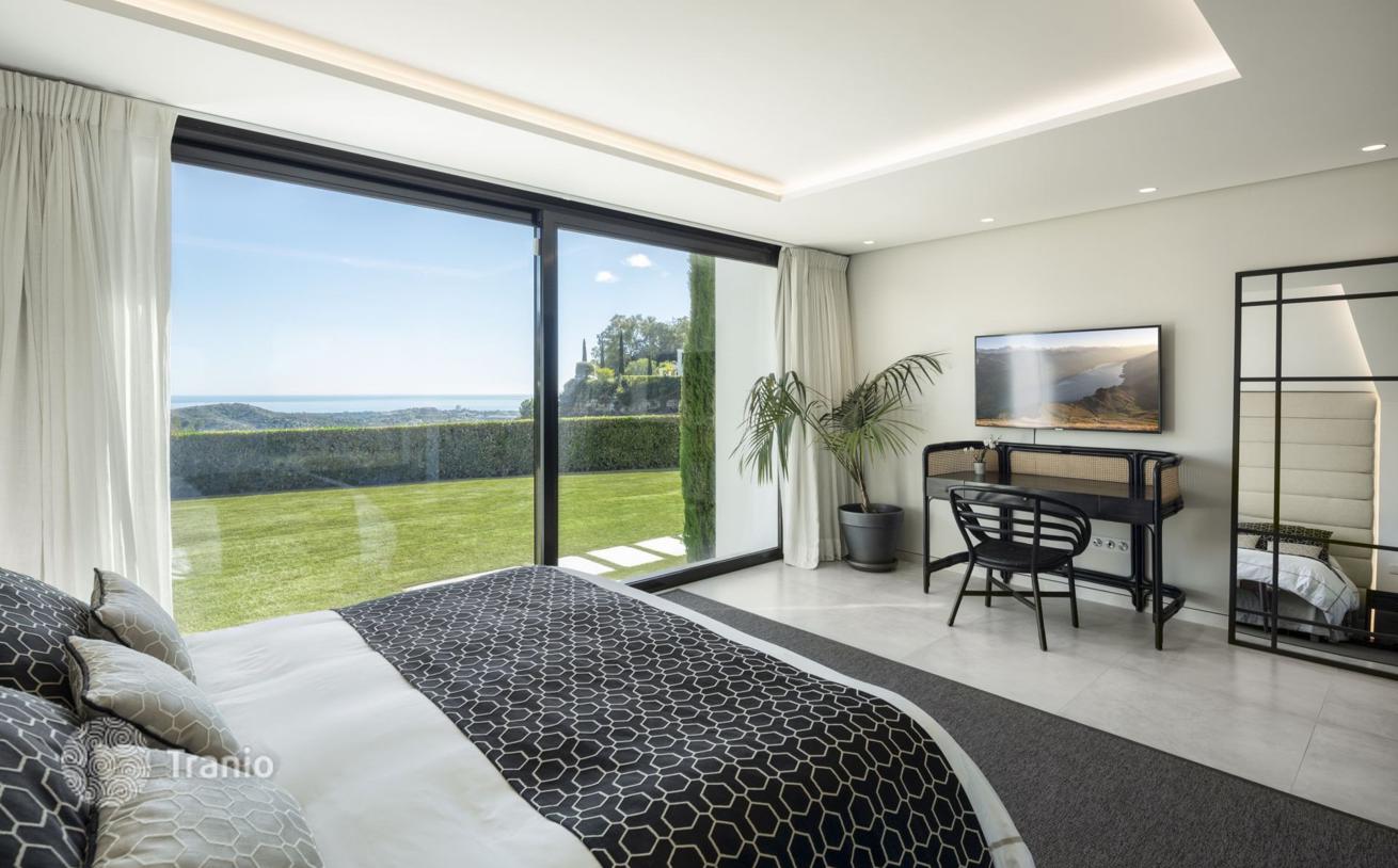 Вилла на продажу в El Madroñal, Benahavis, с 5 спальня, 5 ванная, 5 ванная комната, 2 туалет, Здание было построено в 2021 и характеристики бассейн (Частный), гараж (Частный) и сад (Частный). Что касается собственности размеры, он имеет 1080 m² построенный, 4300 m² участок. Этот объект, с ориентацией юг, имеет следующие возможности: Полностью оборудованная кухня, Камеры наблюдения, Джакузи, Сауна, Спутниковое ТВ, Винный погреб, Кладовое помещение, Спортивный зал, Сигнализация, Безопасный вход, Двойные стеклопакеты, Абсолютно новая недвижимость, Столовая, Барбекю, Горная сторона, Гостевой туалет, Собственная терраса, Вид на море, Вид на сельскую местность, Вид на горы, Вид на гольф-поле, Aвтоматическая система орошения, Защитные жалюзи, Система домашней автоматизации, Прачечная, Крытая терраса, Встроенные шкафы, Закрытая территория, Кондиционирование, Вид на сад, Вид на бассейн, Панорамный вид, Кинозал, Швейцар, Частичный подогрев полов, Винный погреб, Открытая терраса, Игровая комната, Открытая кухня, Дополнительный мебели, Курорт — SPA и Отличное состояние.