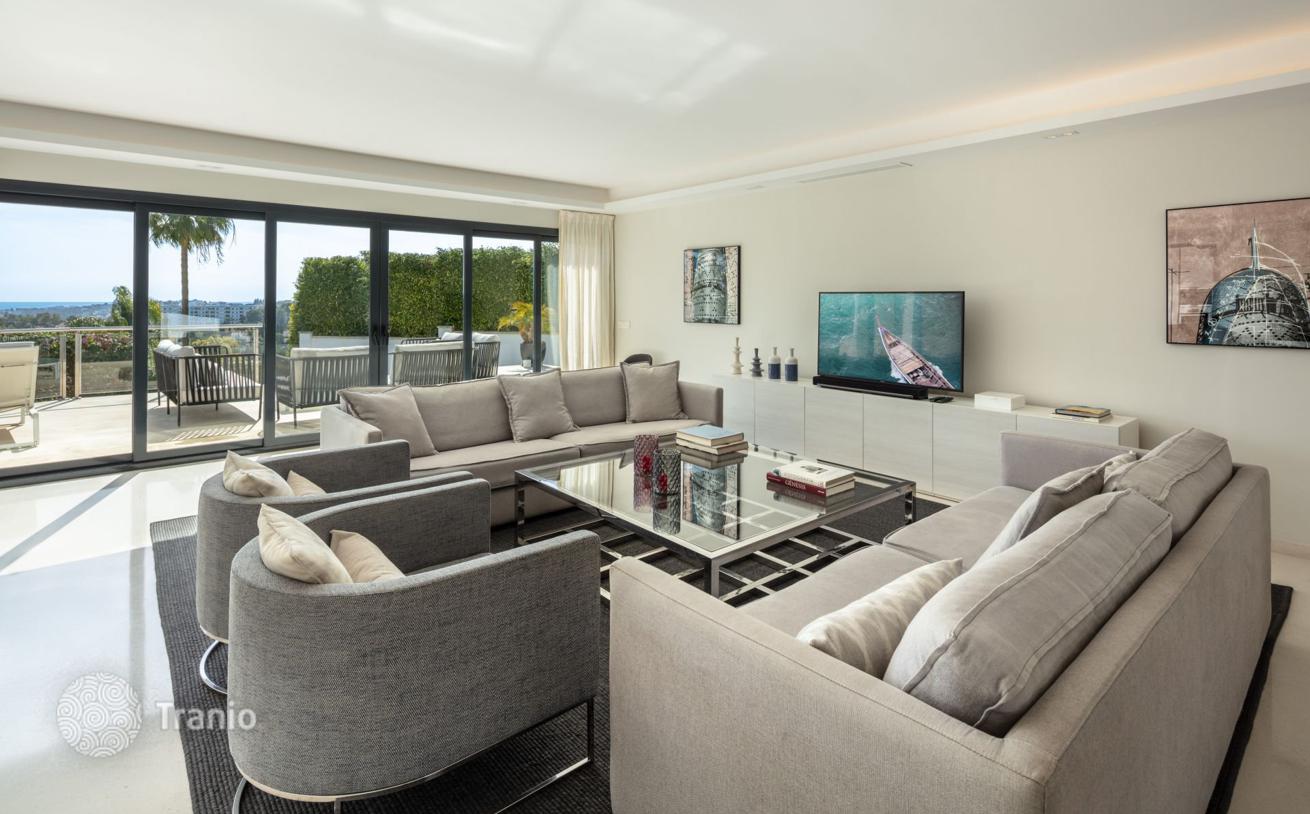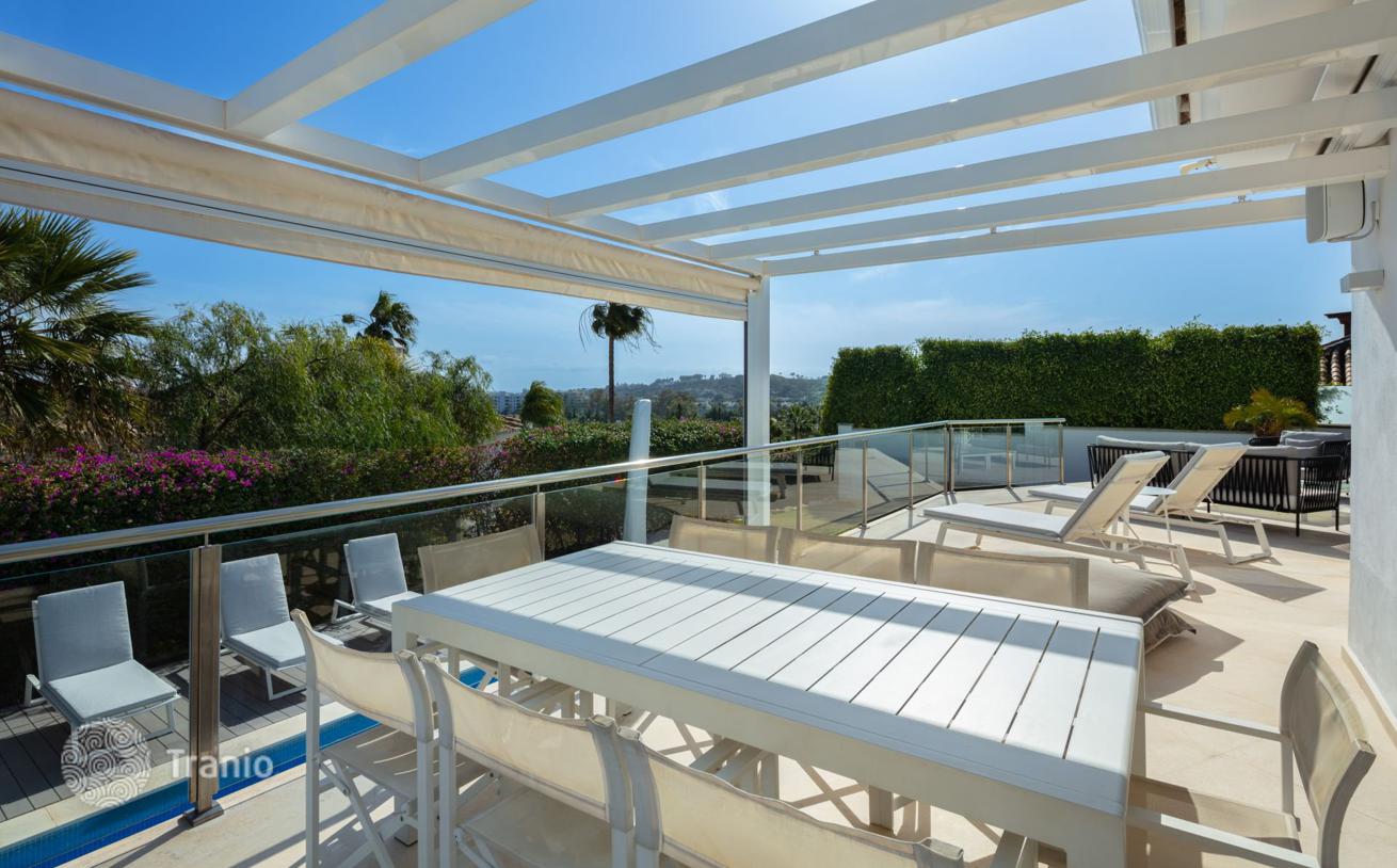 Полностью отремонтированная семейная вилла с захватывающим видом на море в самом сердце долины Гольфа, Нуэва Андалусия. Вилла расположена на 3 уровнях и предлагает открытую планировку с большим количеством естественного света.