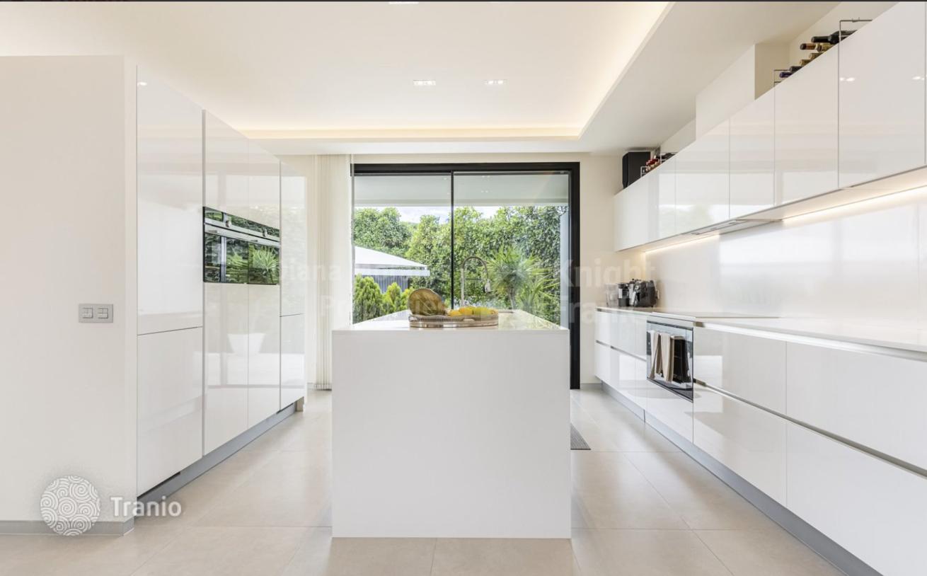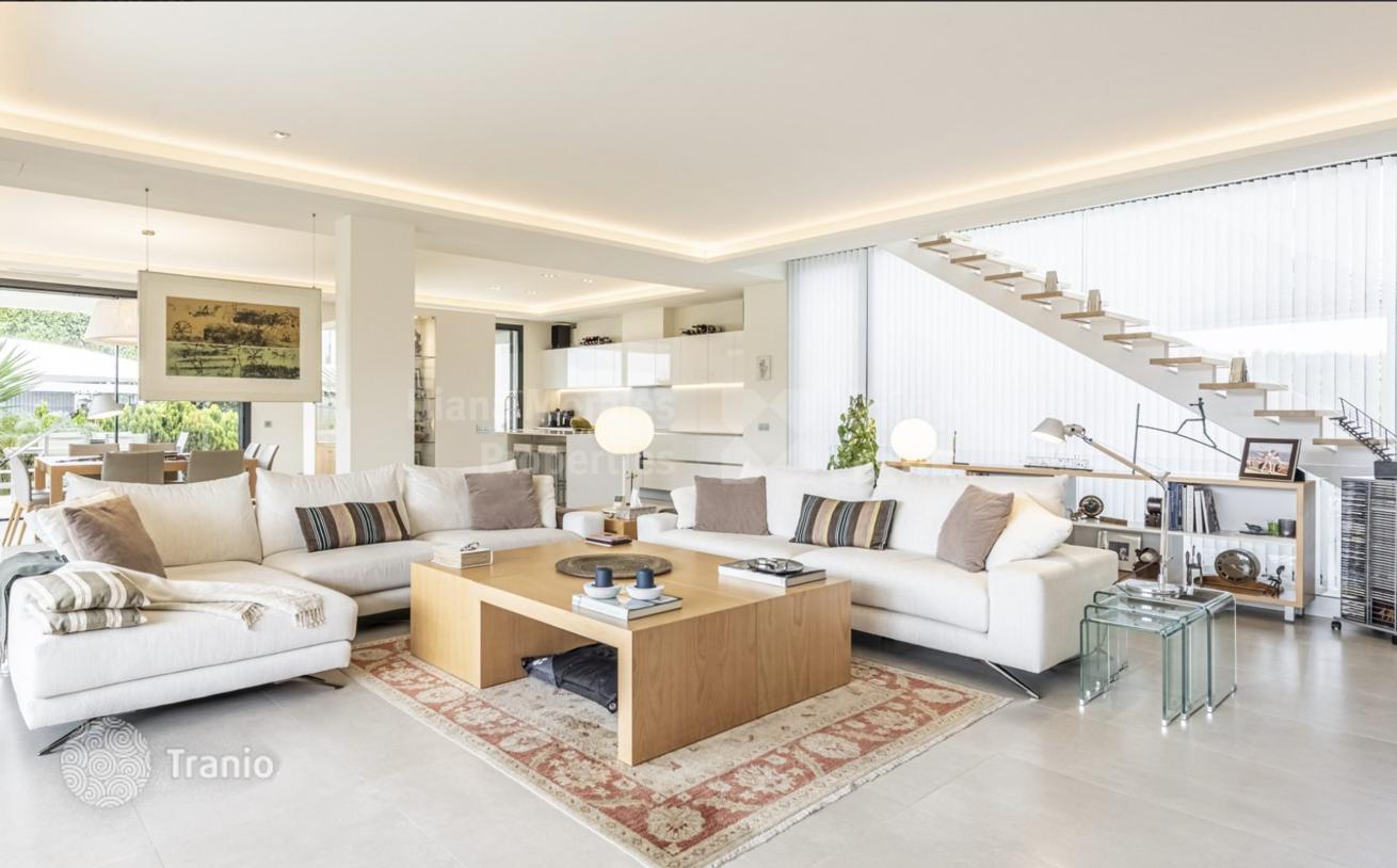 Эта вилла, построенная из высококачественных материалов, имеет удобную и функциональную планировку и современный дизайн. Дом расположен в одном из престижных районов Золотой Мили Марбельи и предлагает на первом этаже прихожую, гостиную/столовую с кухней открытого плана и трехсторонний камин на биоэтаноле. Завершает этот уровень спальня с двуспальной кроватью. Все комнаты выходят на крытые террасы, которые спускаются в сад и к бассейну. На верхнем уровне расположены две спальни, одна из которых является главной спальней с джакузи, душем и гардеробной и имеет общую открытую террасу с видом на море и гору Ла Конча. Офис с видом на море и выходом в большую внешнюю гостиную, которая при необходимости может быть огорожена, а дополнительная терраса завершает планировку этого уровня. В цокольном этаже находится просторное помещение, залитое естественным светом благодаря моторизованным окнам с электрическими самозапирающимися жалюзи, которые управляются от системы домашней автоматизации. Пространство включает в себя зону отдыха с телевизором, бар, тренажерный зал и винный погреб. Кроме того, есть еще две спальни с 2 ванными комнатами и еще одна спальня с отдельной ванной комнатой, прачечной и машинным отделением. На крыше также есть просторный солярий, откуда можно наслаждаться солнцем и закатами.