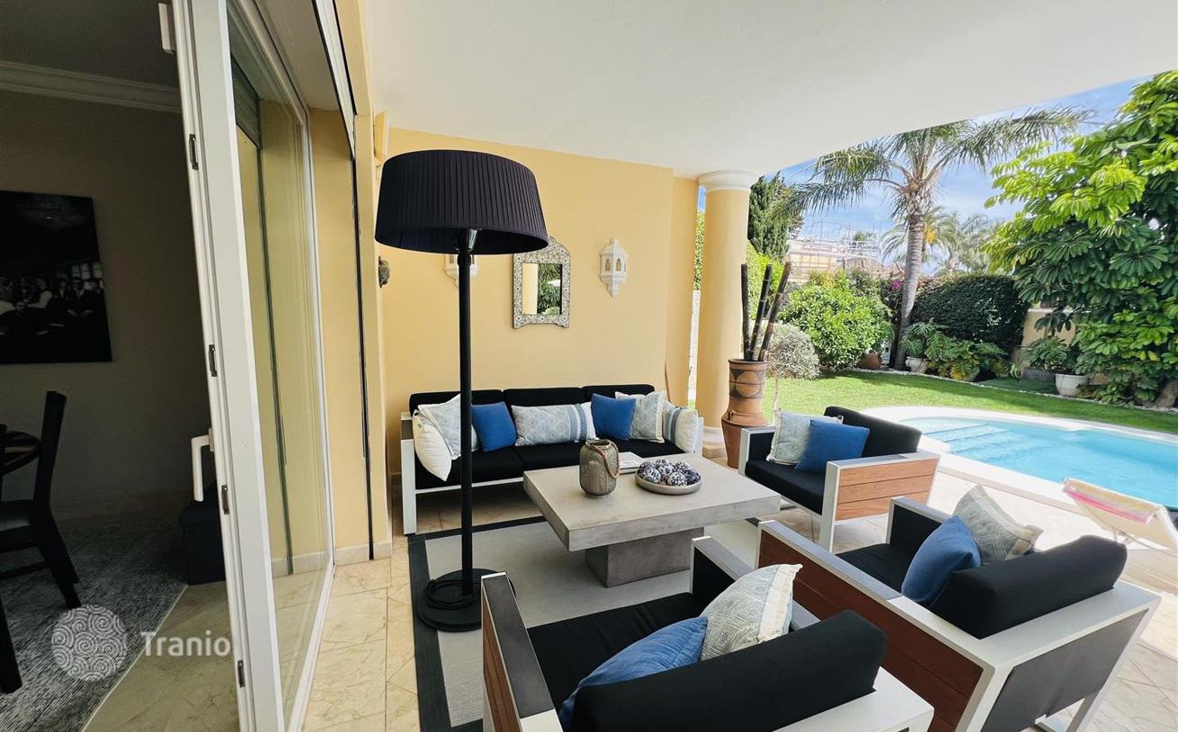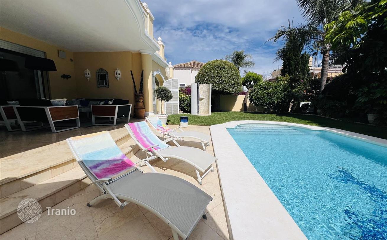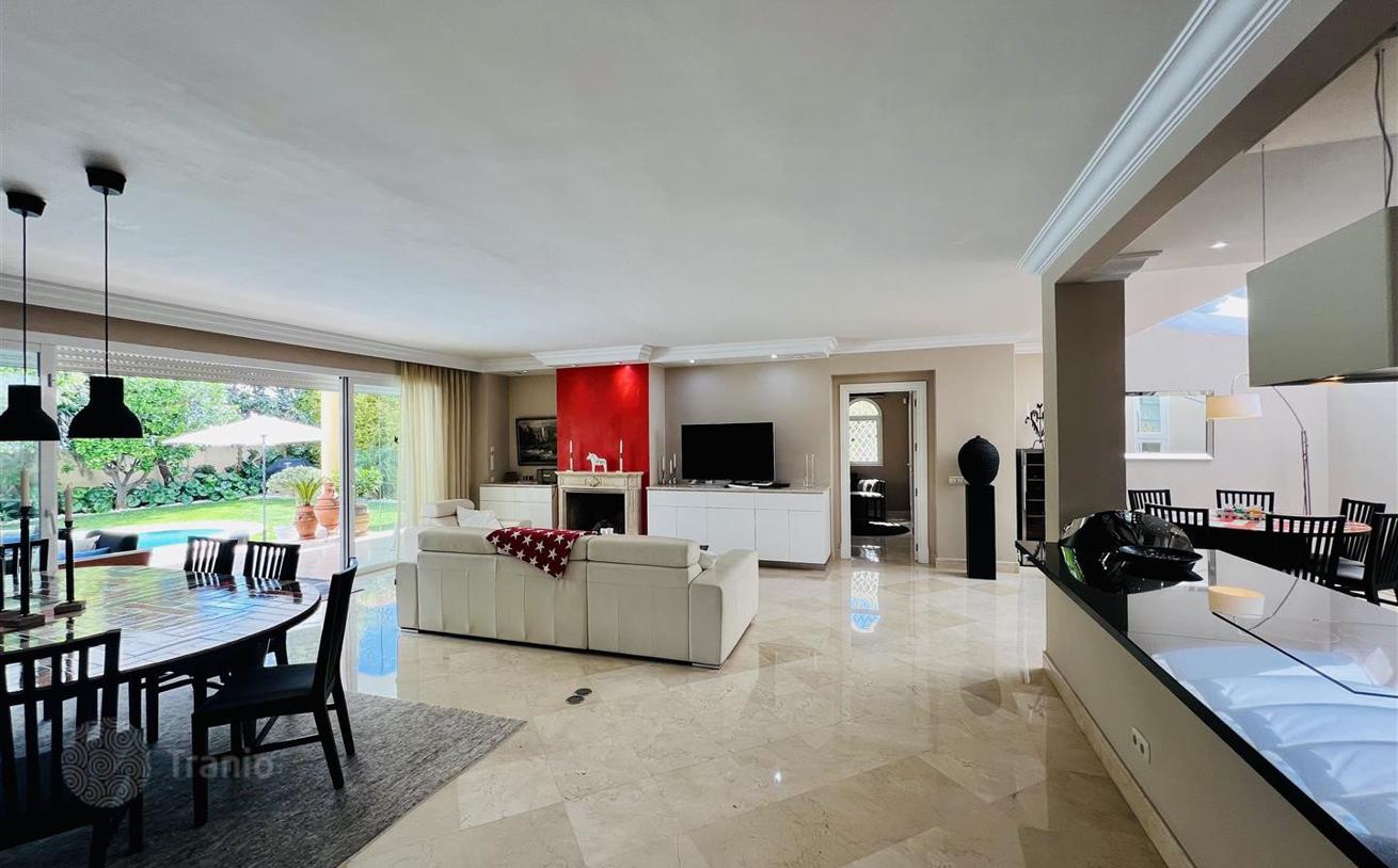 Этот красивый семейный дом в классическом стиле, расположенный в закрытом поселке на берегу моря, находится в безупречном состоянии внутри и снаружи. Он имеет 5 спален, включая очень просторную главную спальню. В гостиной царит уютная атмосфера с камином и открытой кухней. Дом построен на двух этажах и имеет крытый гараж. Сад и бассейн очень уединенные и уютные, идеально подходят для семейного отдыха или барбекю с друзьями, включая бассейн с подогревом, идеально подходящий для зимних месяцев. Расположение, пожалуй, лучшее: в прибрежном поселке на Золотой Миле, всего в нескольких минутах ходьбы от центра Марбельи и знаменитого отеля Marbella Club, всего в нескольких минутах ходьбы от набережной. Во всем доме имеется отопление, полы с подогревом.