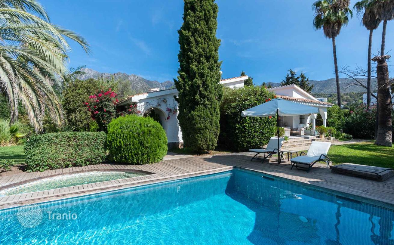 Вилла на продажу в La Cantera, Marbella, с 5 спальня, 5 ванная, 1 туалет и характеристики бассейн (Частный), гараж (Частный) и сад (Частный). Что касается собственности размеры, он имеет 590 m² построенный, 2690 m² участок. Этот объект, с ориентацией юго-запад, имеет следующие возможности: Полностью оборудованная кухня, Рядом с магазинами, близко к городу, Рядом со школой, Подсобное помещение, Камин, Джакузи, Сауна, Кладовое помещение, Сигнализация, Барбекю, Гостевой туалет, Собственная терраса, Культурно-бытовые объекты рядом, Отдельные апартаменты, Бассейн с подогревом воды, Aвтоматическая система орошения, Общественный транспорт рядом, Прачечная, Крытая терраса, Встроенные шкафы, Вид на сад, Вид на бассейн, Центральное отопление, Винный погреб, Хорошее состояние, Нуждается в ремонте и вид на озеро.
