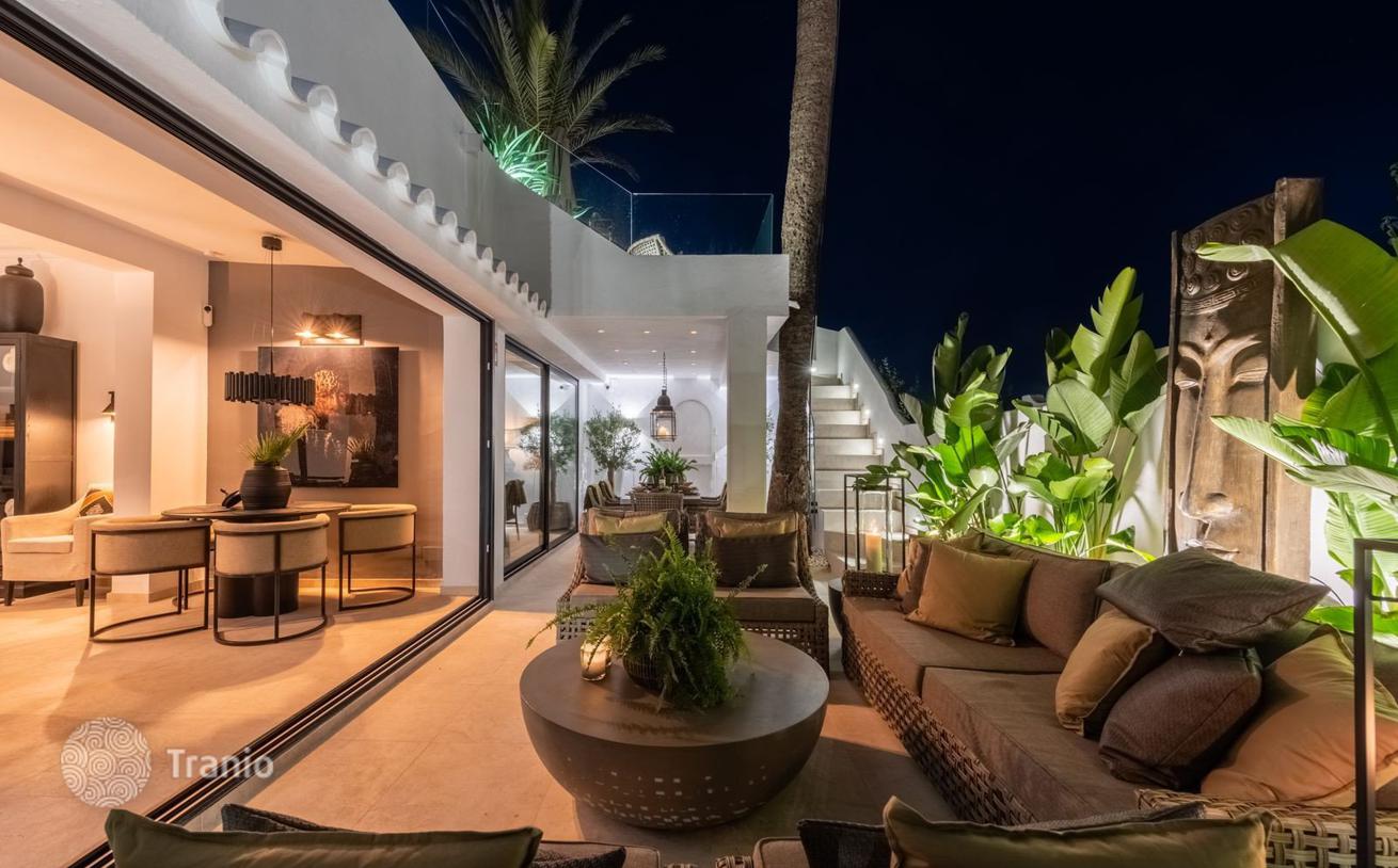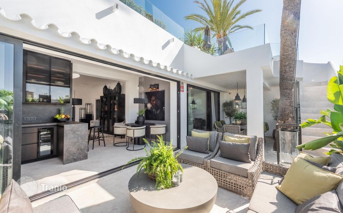 Таунхаус на продажу в Oasis de Marbella, Marbella Golden Mile, с 3 спальня, 3 ванная, Здание было построено в 1970 и характеристики бассейн (общий), гараж (Навес для машины) и сад (общий). Что касается собственности размеры, он имеет 189 m² построенный, 123 m² интерьер, 76 m² терраса. Этот объект, с ориентацией юг, имеет следующие возможности: Полностью оборудованная кухня, Рядом с магазинами, близко к городу, близко к порту, Рядом со школой, Камин, Мраморные полы, Первая линия пляжа, Солярий, Столовая, Барбекю, Собственная терраса, Гостиная, Культурно-бытовые объекты рядом, Вид на море, Общественный транспорт рядом, Крытая терраса, Встроенные шкафы, Закрытая территория, Кондиционирование, Море рядом, Детская площадка рядом, Рядом море/пляж, Возле поля для гольфа, Открытая терраса, Дополнительный мебели, Полная меблировка и Недавно отремонтированный.