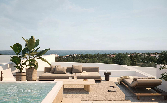 Этот эксклюзивный проект включает 13 уникальных таунхаусов, каждый из которых отличается элегантным скандинавским дизайном, гармонично сочетающимся с окружающей природой. Архитектура таунхаусов плавно повторяет формы волн. Эти дома, выходящие на южную сторону, спроектированы с учетом требований энергоэффективности, из них открываются захватывающие панорамные виды на море и впечатляющие закаты, которые делают проживание здесь приятным. Одна из отличительных особенностей этих таунхаусов — терраса на крыше, где можно отдохнуть и полюбоваться потрясающими панорамными видами на море и красивыми закатами. Это открытое пространство идеально подходит для приема гостей или просто для отдыха после долгого дня.