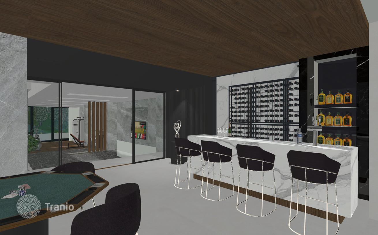 Она имеет 5 спален и 5 ванных комнат плюс 2 туалета. Красиво оформленная кухня будет оснащена современной высокотехнологичной техникой Miele. Этот безупречный интерьер будет украшен шикарной дизайнерской мебелью, произведениями современного искусства и красивыми мраморными акцентами.