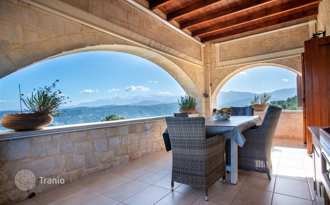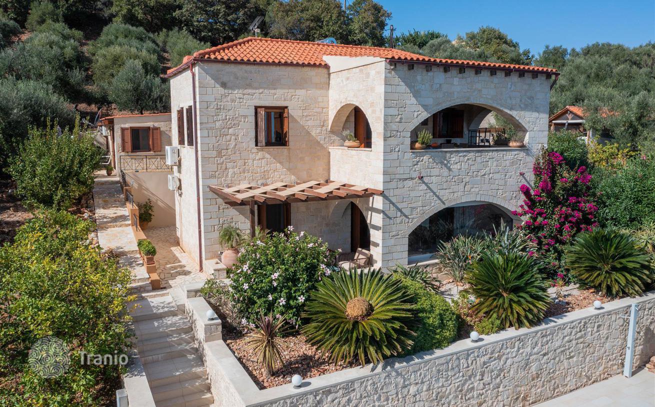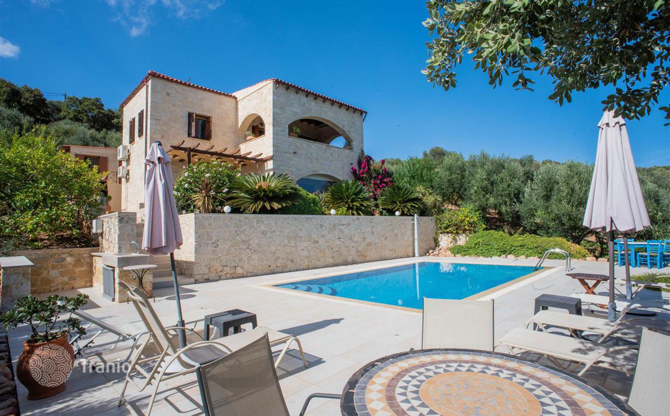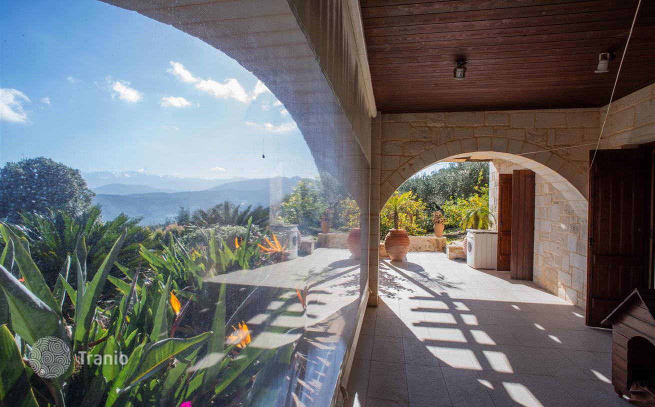 Эта каменная вилла расположена в деревне Вувес. Общая площадь виллы составляет 205 м², она расположена на частном участке площадью 4941 м² и предлагает 3 спальни, 2 ванные комнаты и 2 туалета. Снаружи на территории есть бассейн, несколько зон отдыха с шезлонгами, зонтиками и уличной мебелью, а также большая крытая терраса, выложенная плиткой, с которой открывается потрясающий вид. Склон участка обеспечивает панорамный, беспрепятственный, потрясающий вид на горы и море. Кроме того, здесь растут несколько зрелых продуктивных оливковых и фруктовых деревьев, таких как абрикосы и апельсины.