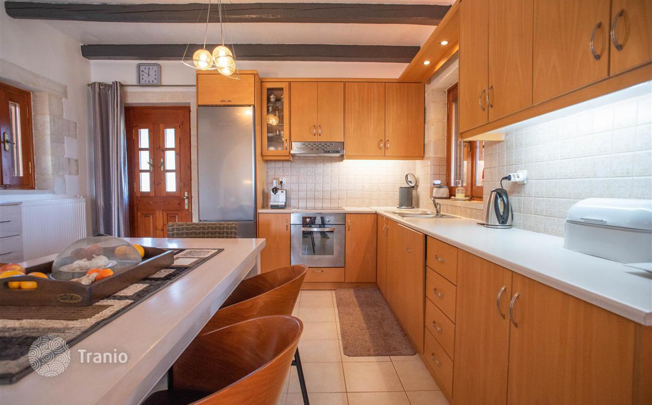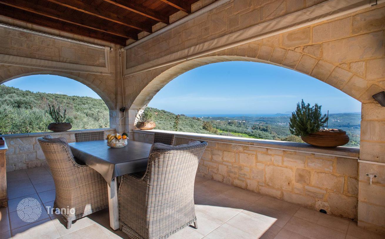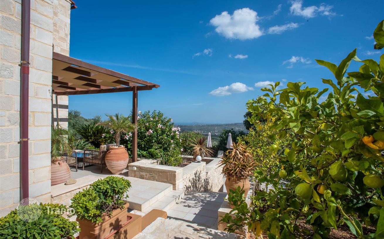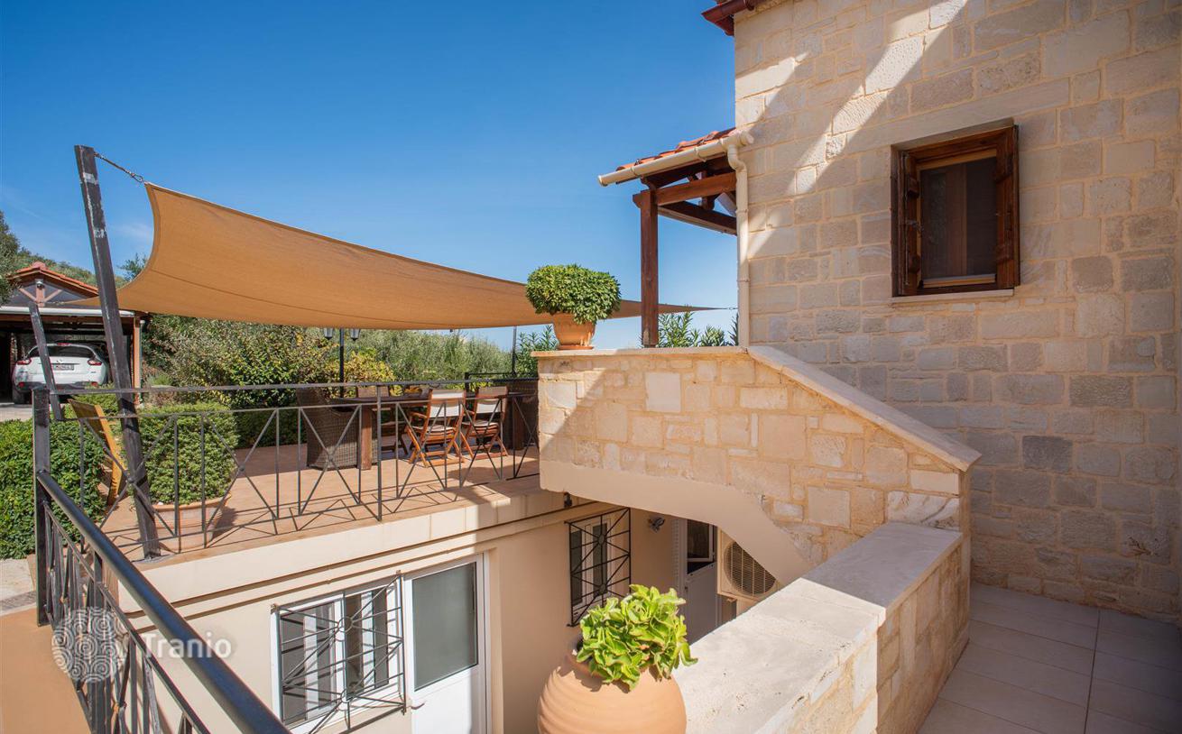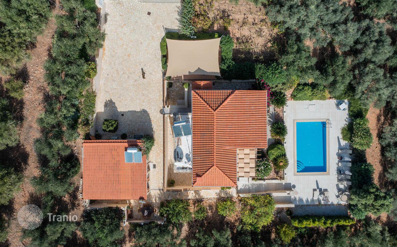 Эта каменная вилла расположена в деревне Вувес. Общая площадь виллы составляет 205 м², она расположена на частном участке площадью 4941 м² и предлагает 3 спальни, 2 ванные комнаты и 2 туалета. Снаружи на территории есть бассейн, несколько зон отдыха с шезлонгами, зонтиками и уличной мебелью, а также большая крытая терраса, выложенная плиткой, с которой открывается потрясающий вид. Склон участка обеспечивает панорамный, беспрепятственный, потрясающий вид на горы и море. Кроме того, здесь растут несколько зрелых продуктивных оливковых и фруктовых деревьев, таких как абрикосы и апельсины.