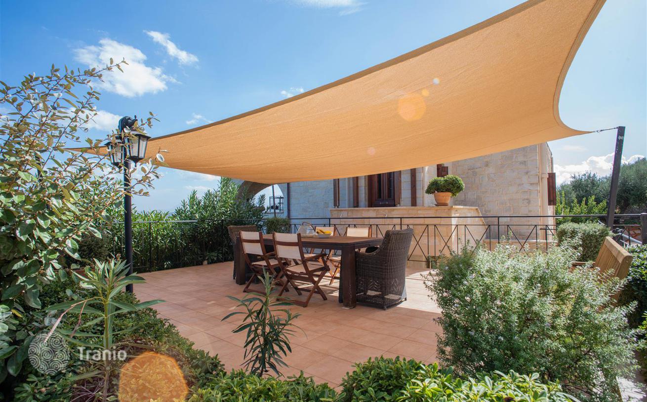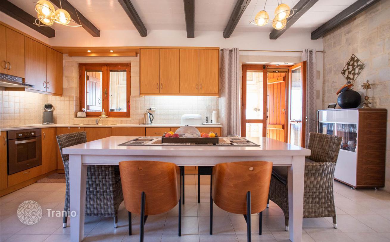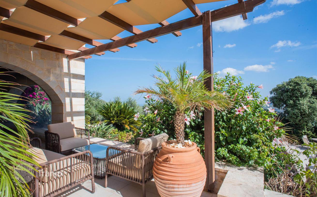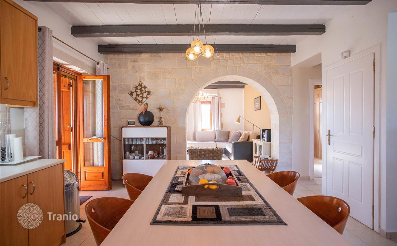 Эта каменная вилла расположена в деревне Вувес. Общая площадь виллы составляет 205 м², она расположена на частном участке площадью 4941 м² и предлагает 3 спальни, 2 ванные комнаты и 2 туалета. Снаружи на территории есть бассейн, несколько зон отдыха с шезлонгами, зонтиками и уличной мебелью, а также большая крытая терраса, выложенная плиткой, с которой открывается потрясающий вид. Склон участка обеспечивает панорамный, беспрепятственный, потрясающий вид на горы и море. Кроме того, здесь растут несколько зрелых продуктивных оливковых и фруктовых деревьев, таких как абрикосы и апельсины.