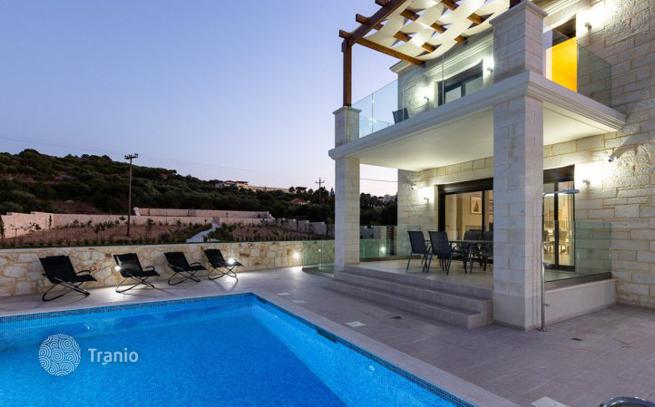 The perfect view from the second floor – it is always green olives and cypresses with a strip of blue horizon of the blue sea. Next to the villa there is a large recreation area: a sun terrace, a swimming pool with a total size of 90 sq. m., a covered pergola for relaxation and barbecue. The ennobled plot of the villa is surrounded by a stone fence in order to ensure complete privacy. For more comfort of the owners the project provides separate from main house a guest house for the staff, with one bedroom, bathroom and small kitchen. Quiet and green area, fresh air, delightful atmosphere, crystal clear sea, proximity to the village and all amenities make this place ideal for living and recreation at any time of the year. The house is made of traditional Cretan stone with elements of concrete and iron awnings and is made in a modern style, creating a delightful atmosphere, an extraordinary aura of comfort and coziness.