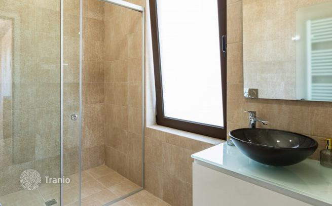 —Italian non-slip tiles lining in Bathroom κ WC; -Alarm system κ cameras; -Video surveillance from a distance; -Exterior lighting for villa, pool κ plot; -Spacious veranda κ big balconies; -Exterior protective glass railings on the balconies and inox-based courtyard; -Electrical entrance gate; -Stamped flooring at the entrance of the house; -Parking with wooden pergola; -Geast house 29,7 sq. m.; -Interior doors from mdf κ solid wood frames; -Water-sewage tank (drainage); -Stone fence around the plot; -Olives tree for the olive oil.