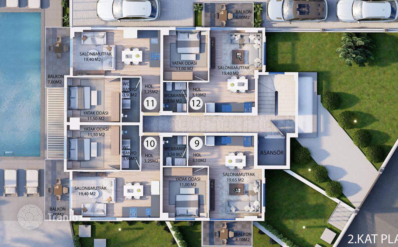 Стильные апартаменты расположены в моноблочном проекте на участке площадью 756 м² В проекте есть общий бассейн, парковка и лифт. Недвижимость продается с 1 и 2 спальнями.