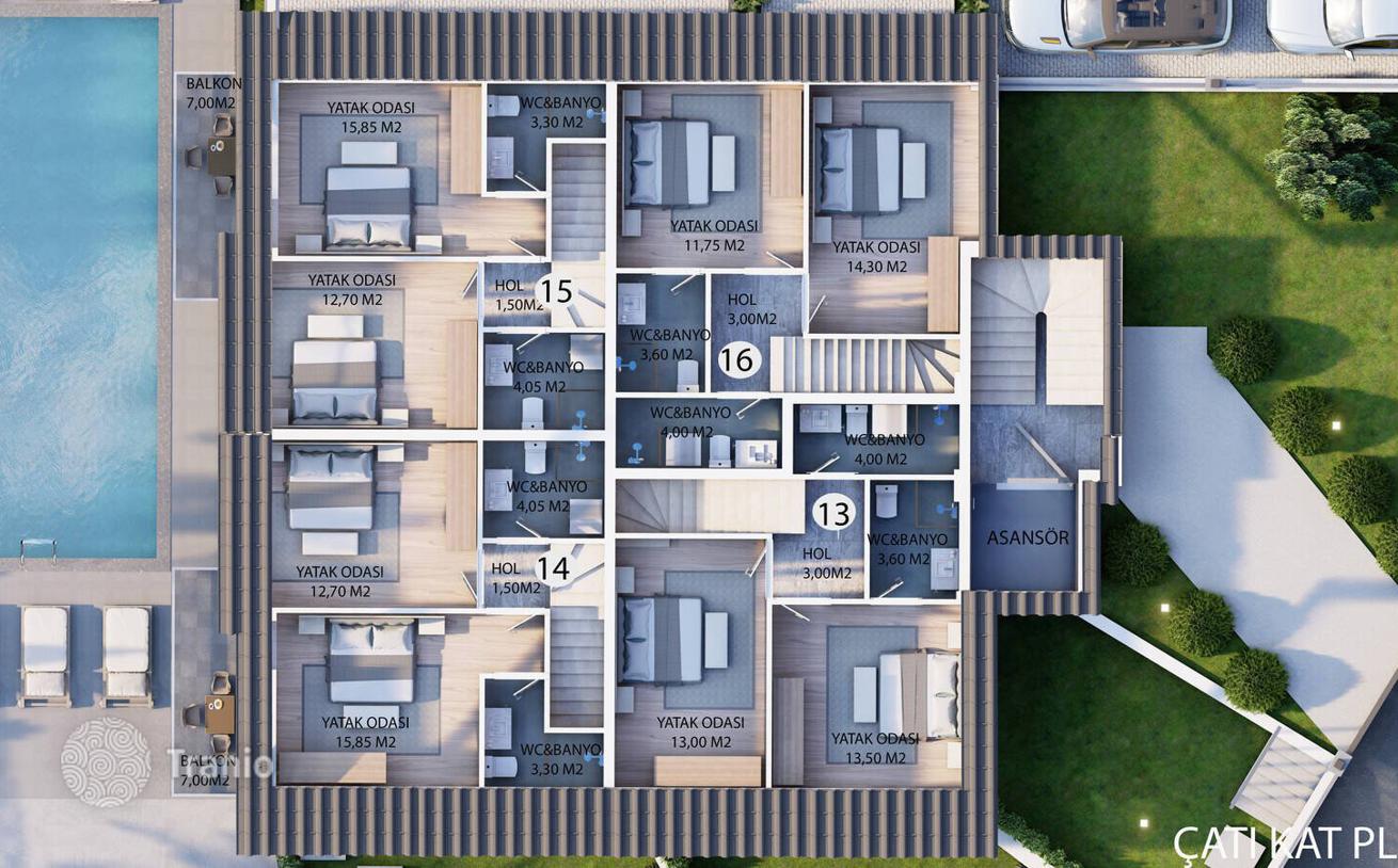 Стильно оформленная недвижимость в проекте с бассейном в центре Фетхие