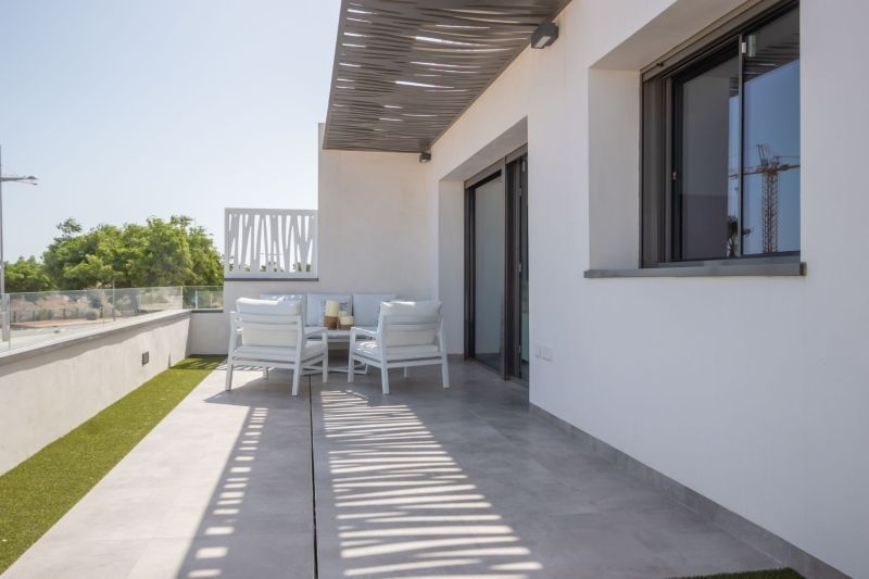 Дом оснащен современной техникой: аэротермальное кондиционирование, тепло- и звукоизоляция. Здесь можно гулять по прекрасному саду, заниматься на спортивных площадках, загорать у открытого бассейна с подогревом, а также отлично проводить время в джакузи, сауне или играя в паддл-теннис. А всего в нескольких минутах на автомобиле и для вас откроется широкий спектр услуг и развлечений на любой вкус в туристическом городе Бенидорм с его чистейшими песчаными пляжами и теплым ласковым морем. 2 км до песчаных пляжей Бенидорм - Вильяхойоса и 40 км до международного аэропорта Аликанте.
