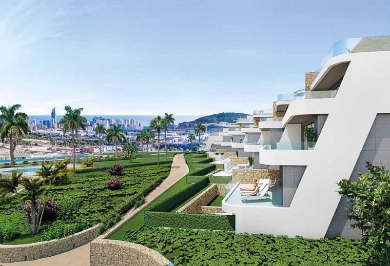 Гармонично вписанный в природный ландшафт новый жилой комплекс с великолепным видом на Средиземное море и Бенидорм.