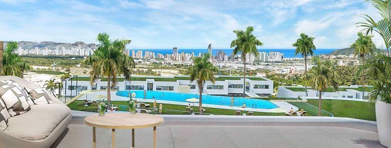 Гармонично вписанный в природный ландшафт новый жилой комплекс с великолепным видом на Средиземное море и Бенидорм.