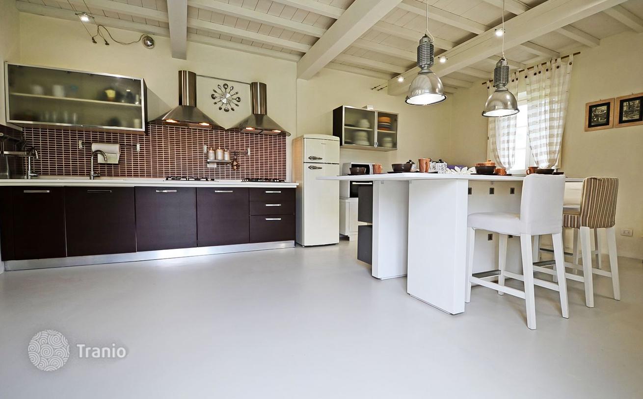 Среди особенностей недвижимости — отдельное здание площадью около 150 м², идеально подходящее в качестве пристройки, большой бассейн размером 6x12 метров, площадка для барбекю с дровяной печью и солярий.