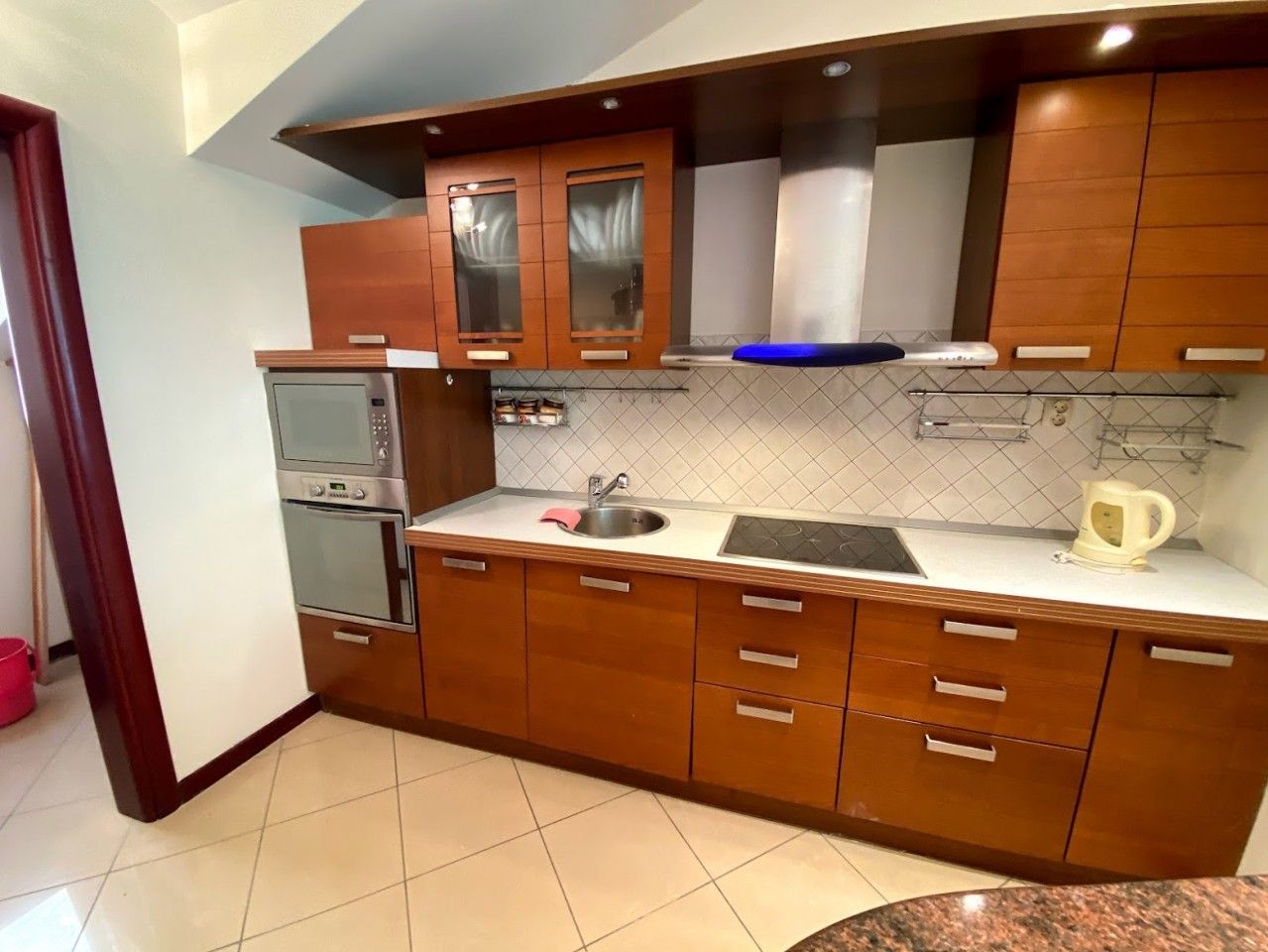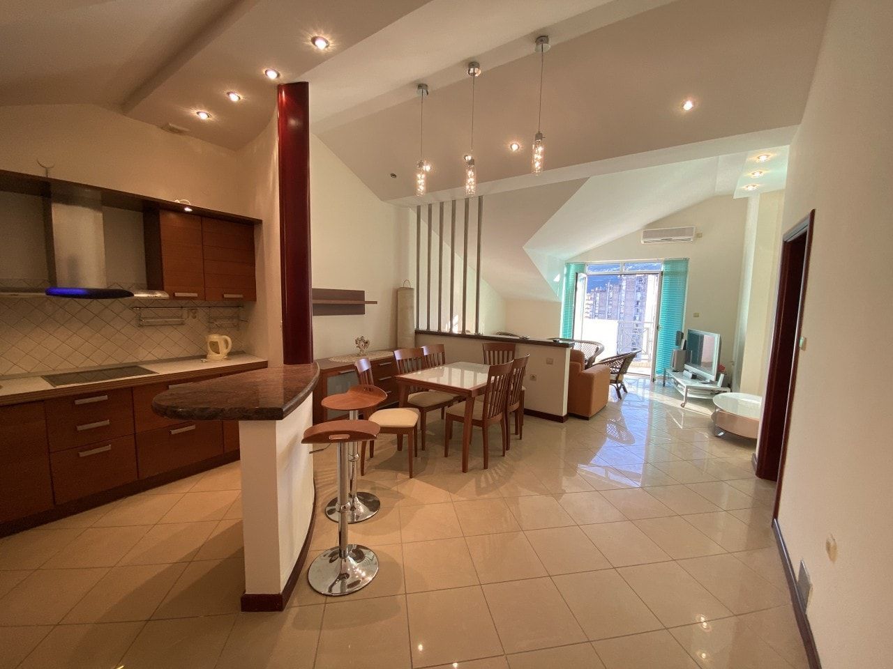 Квартира состоит из просторной гостиной, кухни, двух спальных комнат, двух ванных комнат, террасы с видом на море.
