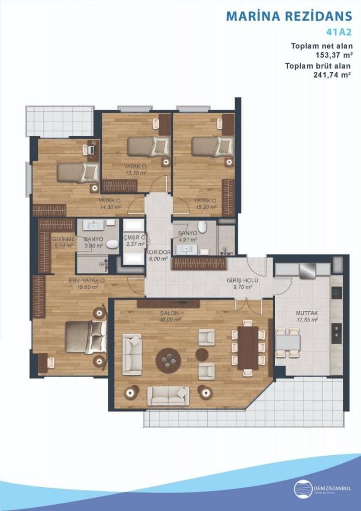 Продаётся роскошная недвижимость в прекрасном городе Стамбуле, расположенная в непосредственной близости от моря. Общая площадь этого нового дома составляет 241.66 квадратных метров, что дает вам много пространства для комфортного проживания.