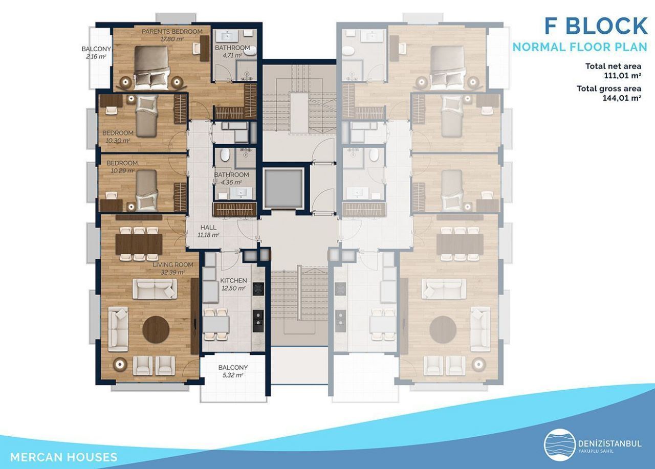 Продаётся просторная трехкомнатная квартира в новом доме в городе Стамбул. Общая площадь составляет 144.62 квадратных метра, что позволяет создать комфортные условия для жизни. Квартира находится на 6 этаже 8-этажного здания, что обеспечивает прекрасный вид из окон.