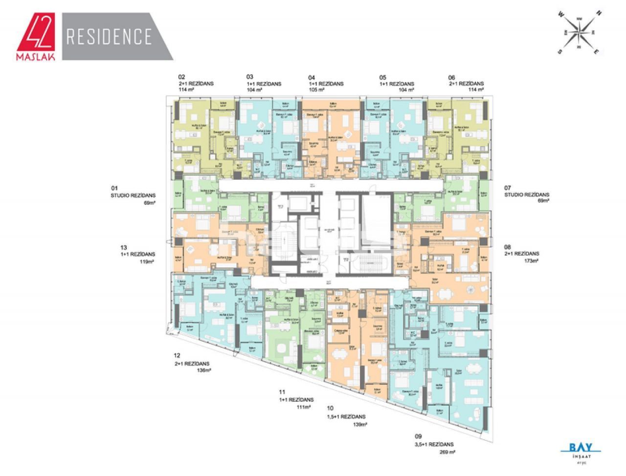 Продаётся новый дом в престижном районе Стамбула - Маслак. Общая площадь квартиры составляет 100 квадратных метров. Планировка - 1+1, то есть одна спальня и просторная гостиная. Квартира находится на 22 этаже 42-этажного здания.