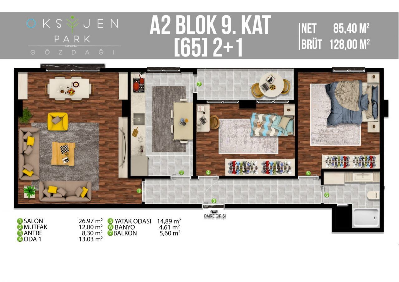 Данный объект недвижимости представляет собой просторную квартиру площадью 46 квадратных метров в строящемся жилом комплексе в городе Стамбул. Квартира имеет планировку 1+1, что означает наличие одной спальни и одной общей комнаты.