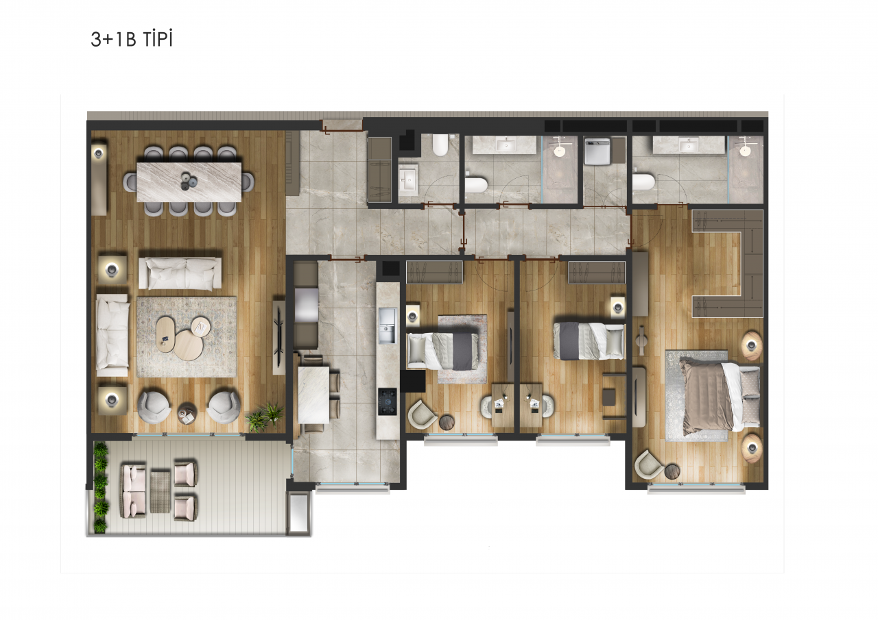 Продается просторная 3+1 квартира в Стамбуле, расположенная в большом городе. Общая площадь брутто составляет 140 кв.м. Это строящийся объект, что дает возможность внести свои коррективы в планировку и дизайн помещений.