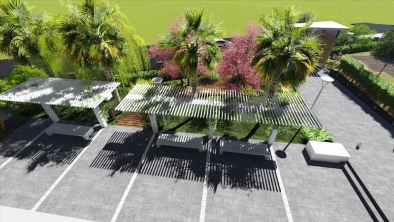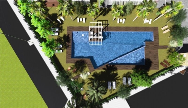 На территории комплекса имеется открытый бассейн, социальный клуб, детская игровая площадка, парковка, мойка для велосипедов и солярий с гамаками.
