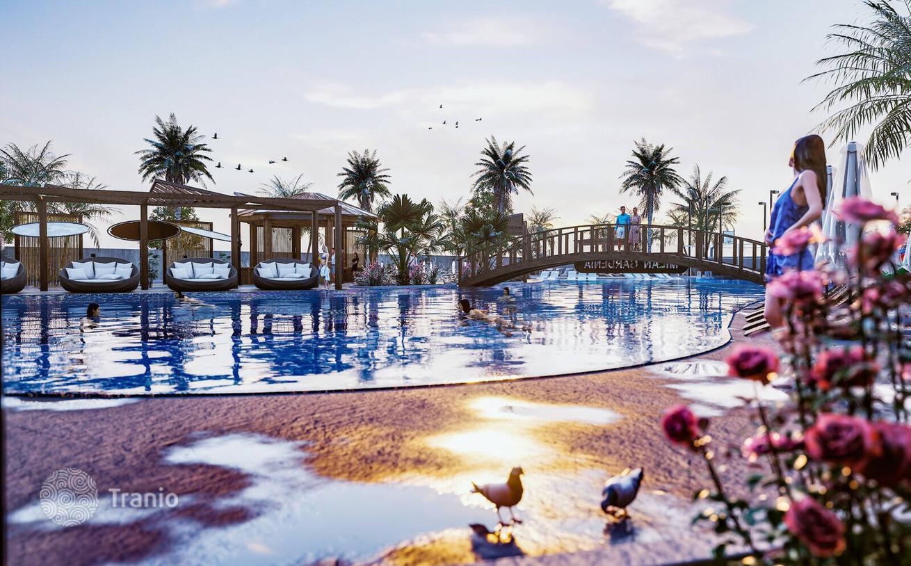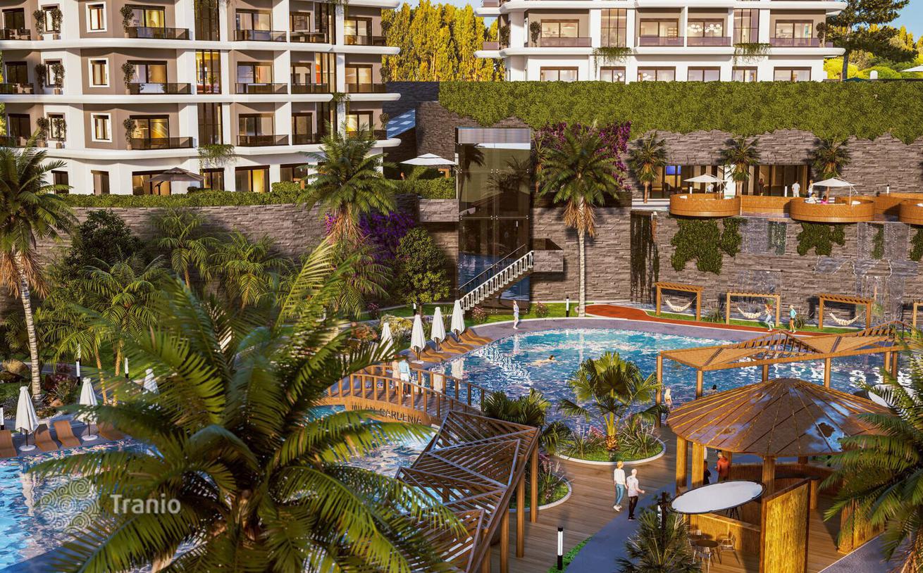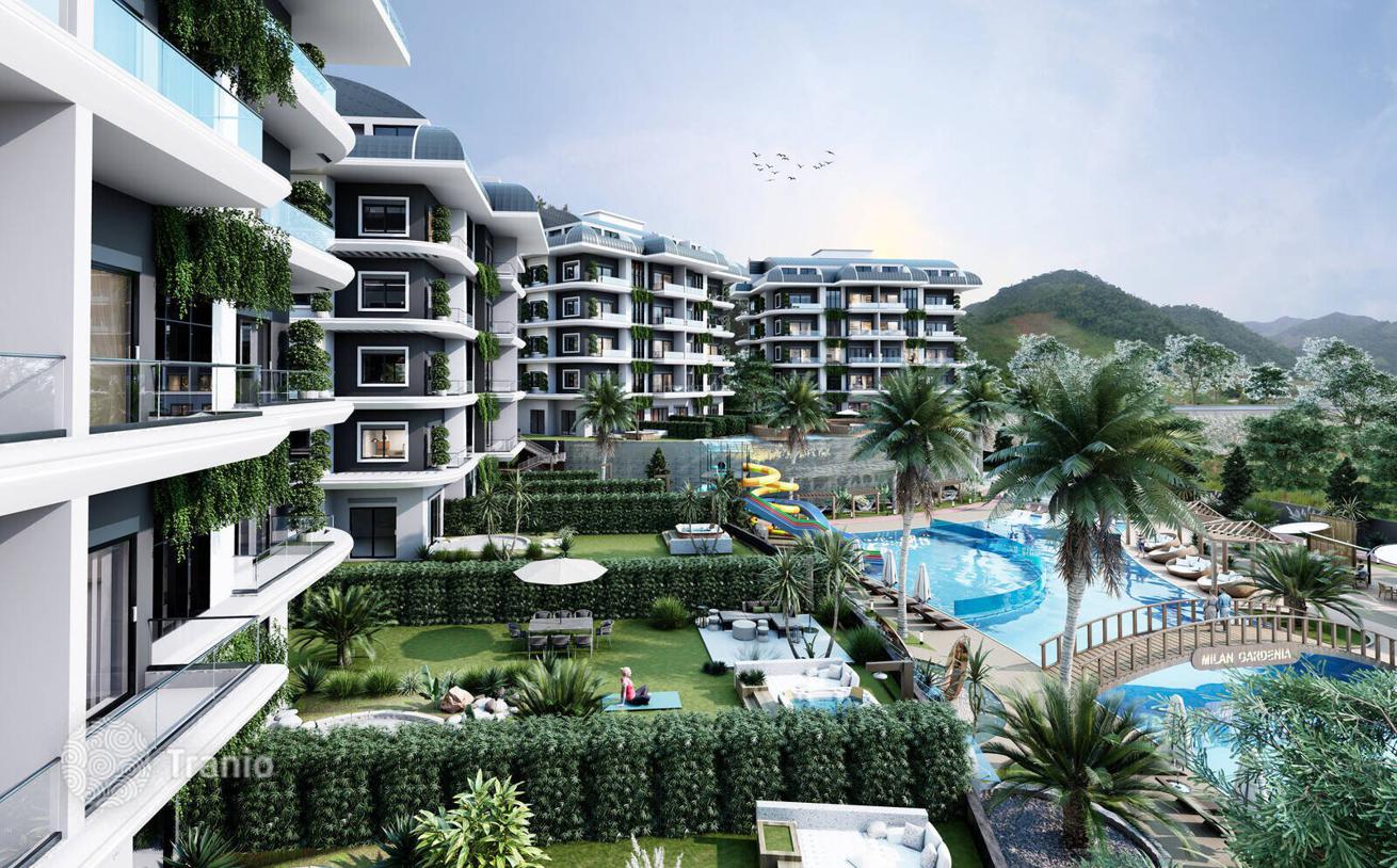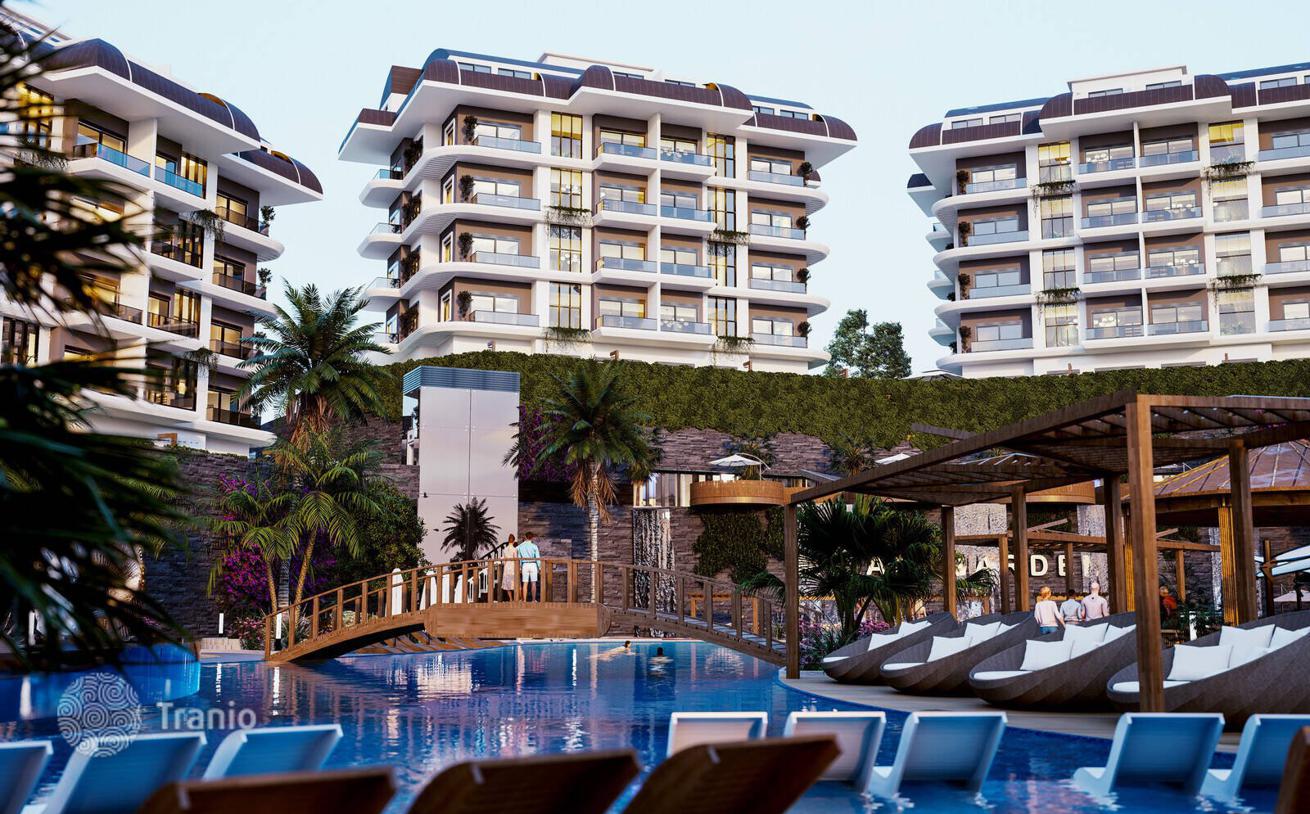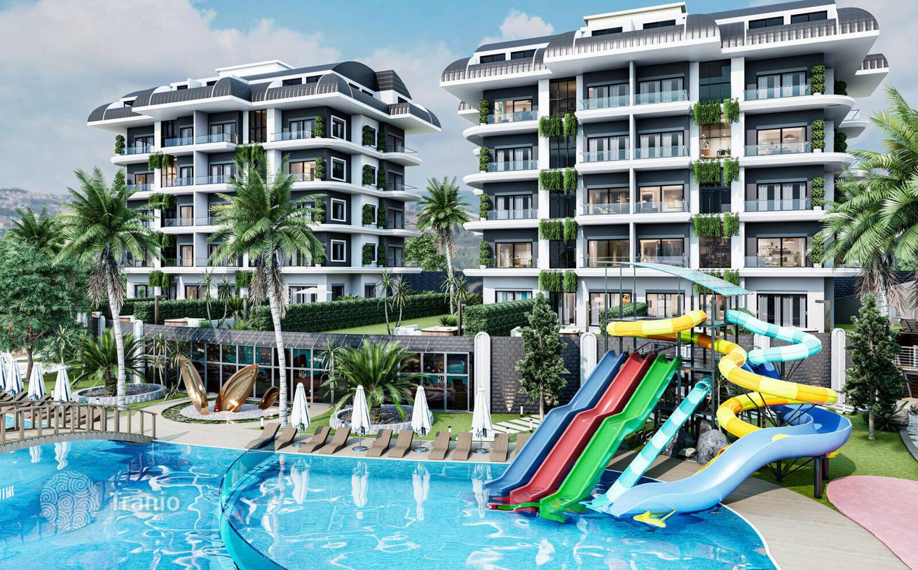 Квартиры расположены в престижном проекте с богатой инфраструктурой. К ним относятся крытый и открытый бассейны, аквапарк, водные горки, турецкая баня, фитнес-центр, сауна, теннисный корт, детская площадка, парк и кинотеатр. Также проектом предусмотрена круглосуточная горячая вода, подключение WI-FI и трансфер.