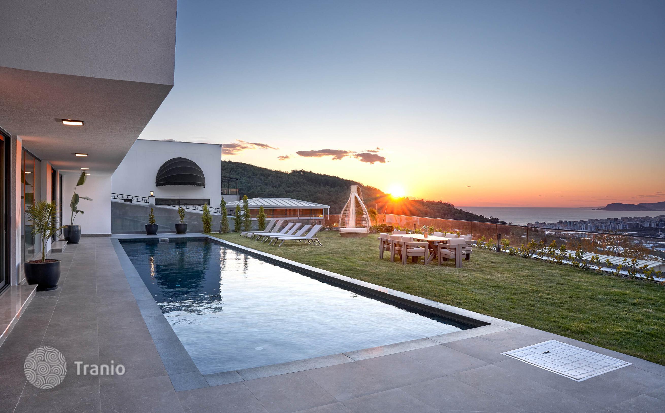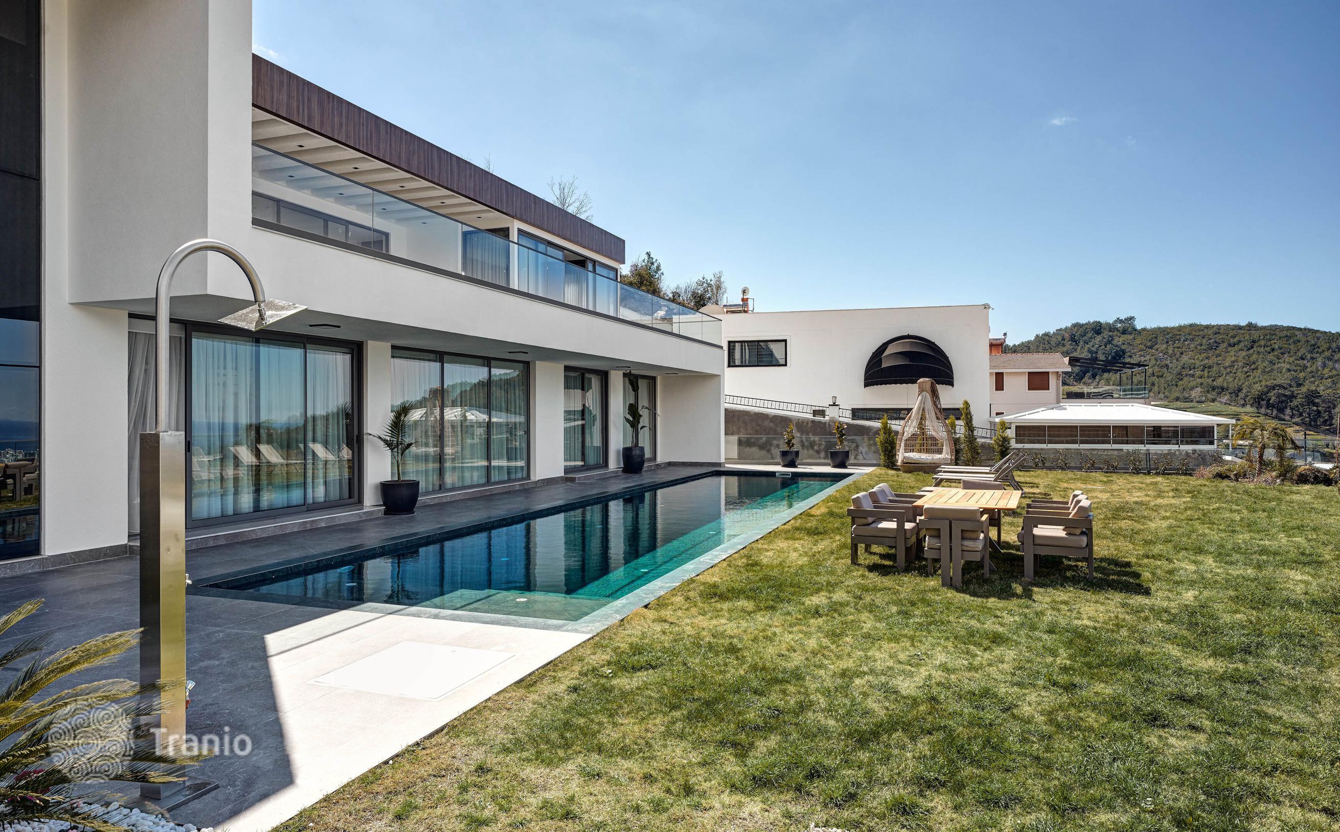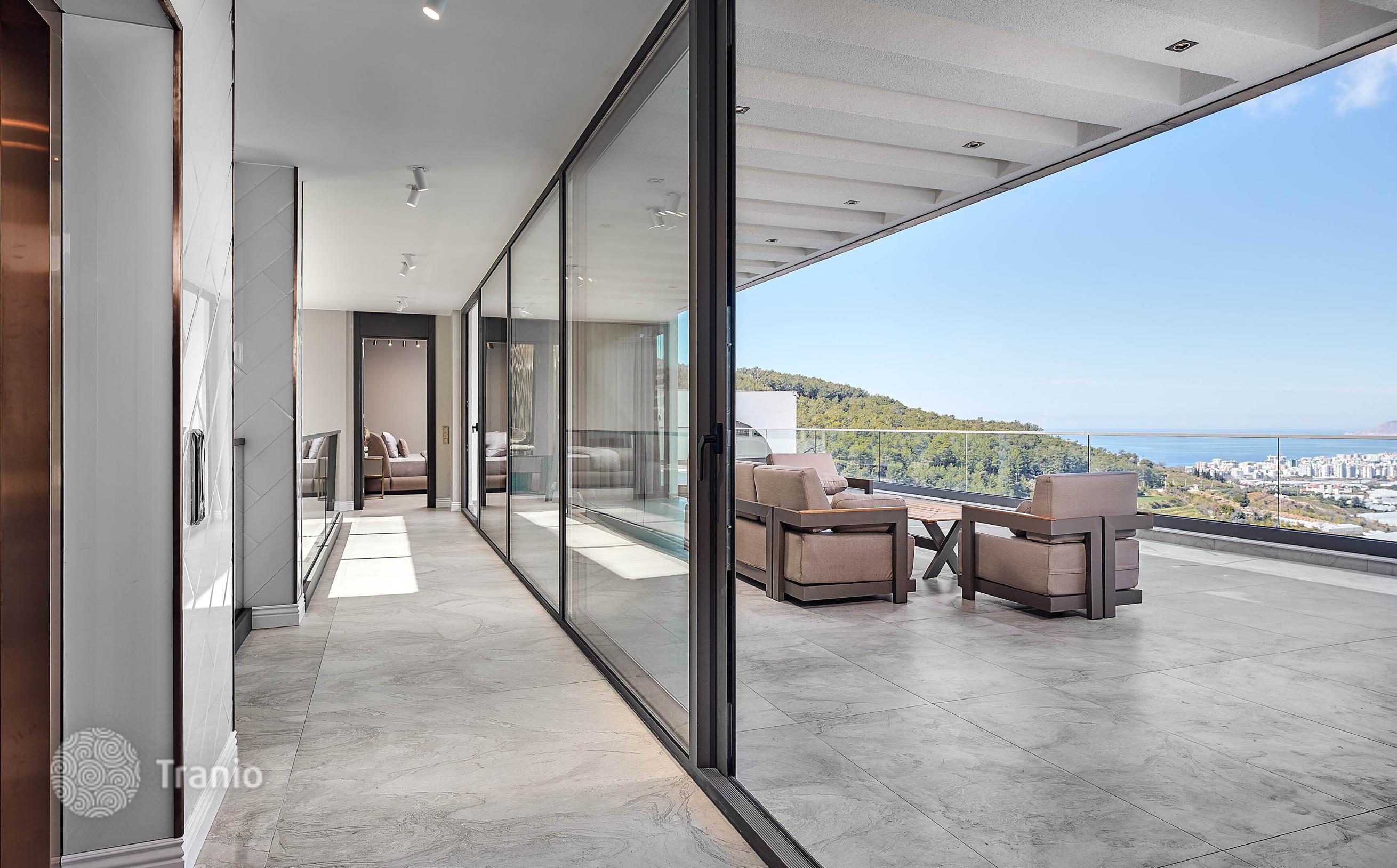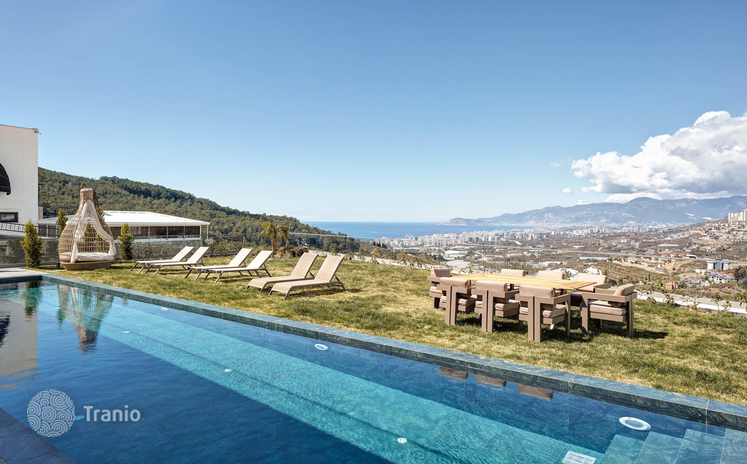Новый комплекс роскошных вилл с видом на море в Каргыджаке-Алания. Система «умный дом». Частный гараж, сад, бассейн и сауна Построен на участке площадью 4323 м² и состоит из 4 роскошных вилл. Просторные, светлые и комфортабельные виллы оборудованы собственным лифтом, бассейном, садом, гаражом, сауной, подсобными помещениями, спортивным залом и комнатой для хобби. 3х-этажные виллы планировки 4 + 1 площадью 400 м² построены с полным учетом шумо-и влагоизоляции. При строительстве использовались только экологически чистые и высококачественные материалы. Комплекс расположен в идеальном месте, вдали от шума и суеты города, в окружении гор и сосновых лесов. С каждой виллы открывается незабываемый вид на Средиземное море, горы и крепость Алании. На продажу осталась всего одна вилла. Вилла А построена на участке площадью 983 м², общая площадь самой виллы составляет 400 м² Cобственный крытый гараж, бассейн и сад в пределах своего участка. Подвал площадью 216 м²: гараж, тренажерный зал, сауна, массажный кабинет, кладовая, туалет и душ. Первый этаж: 2 спальни (одна с гардеробной и ванной комнатой), ванная комната, просторная гостиная, совмещенная с кухней и кладовой. Второй этаж: 2 спальни, каждая с ванной комнатой и просторная терраса.
