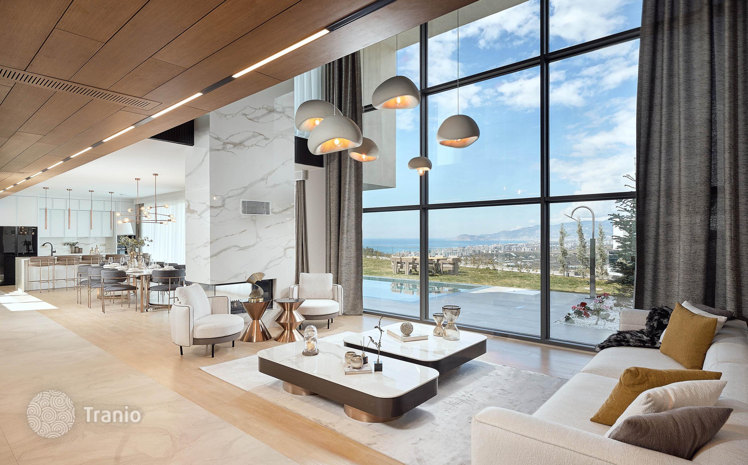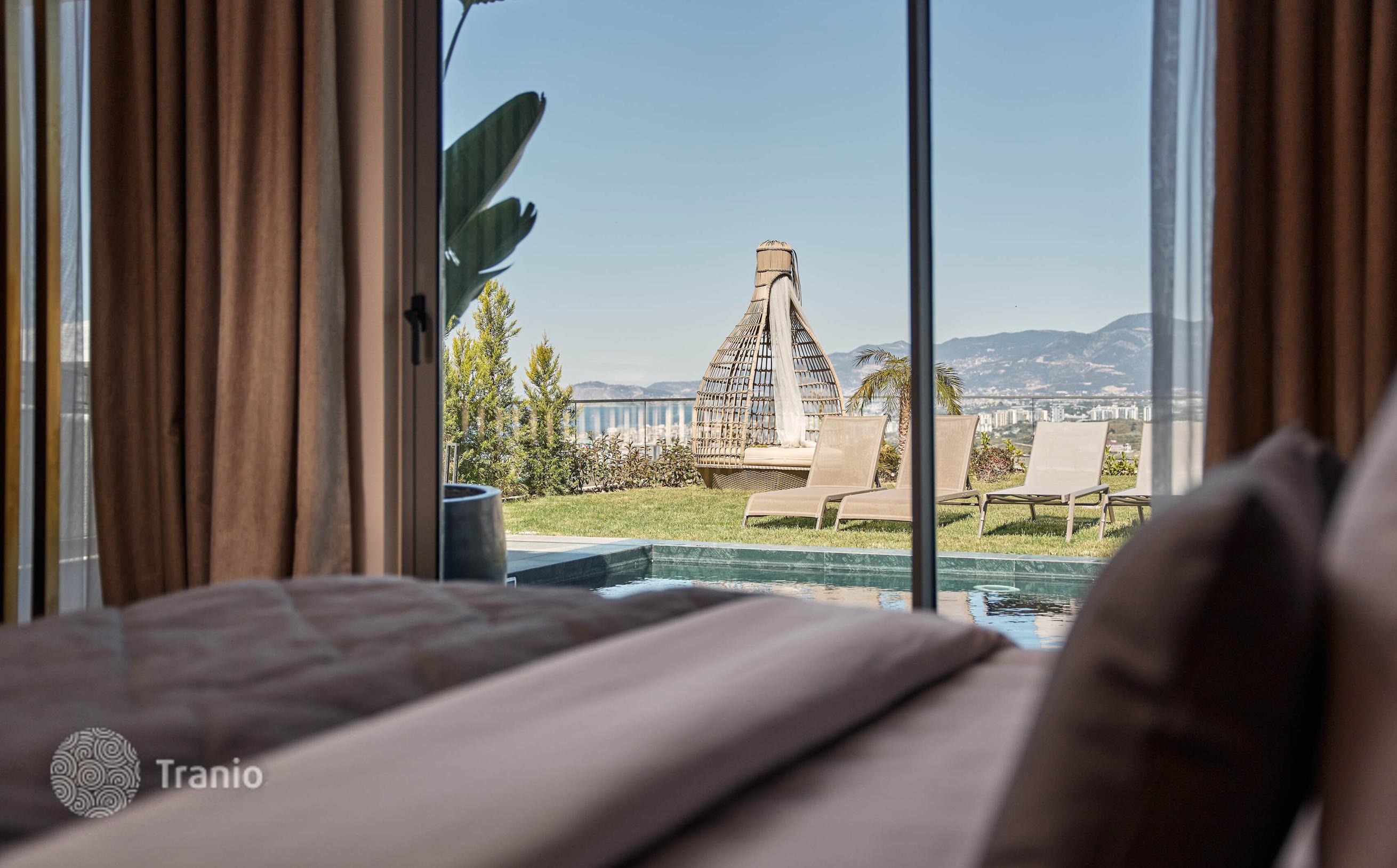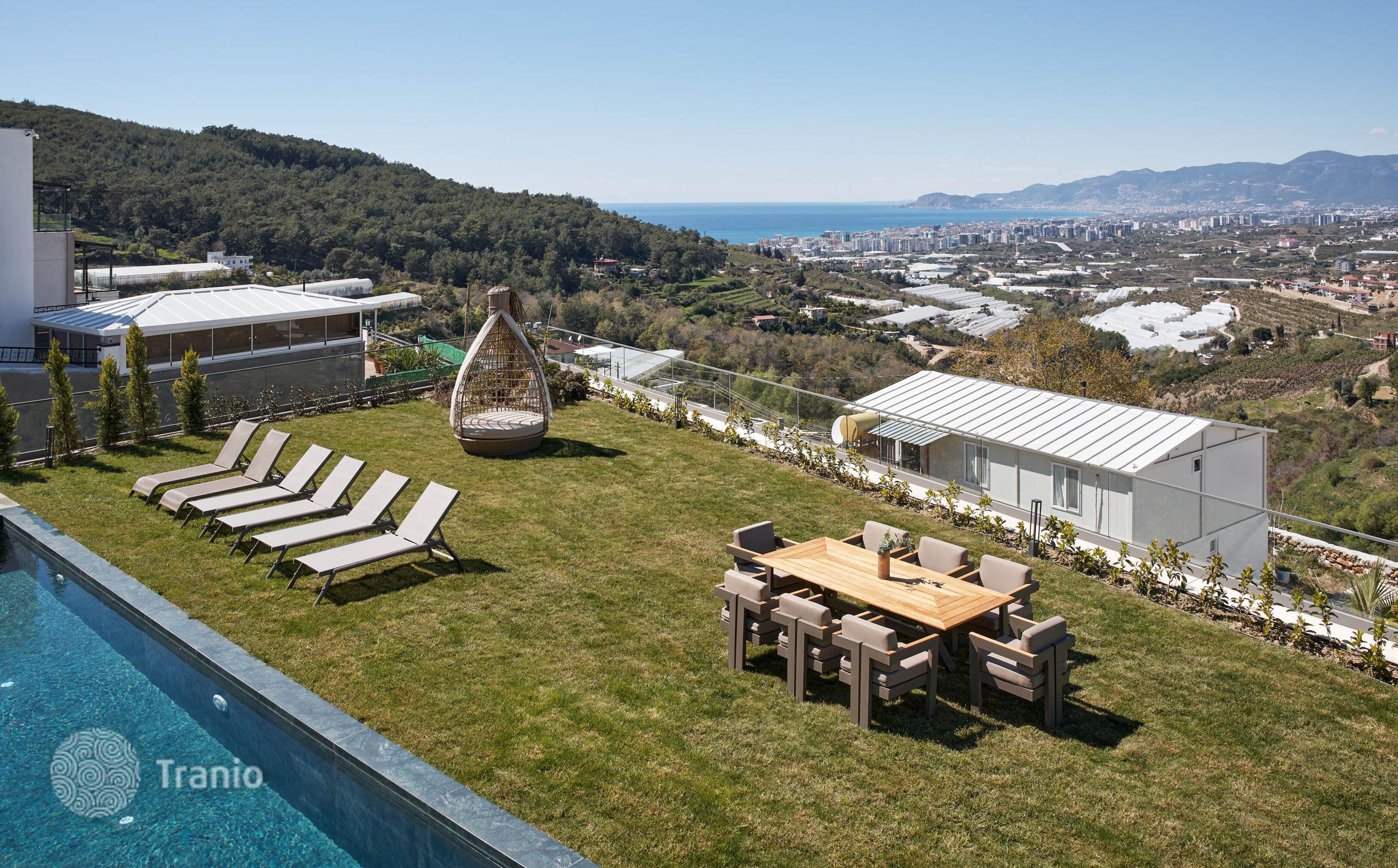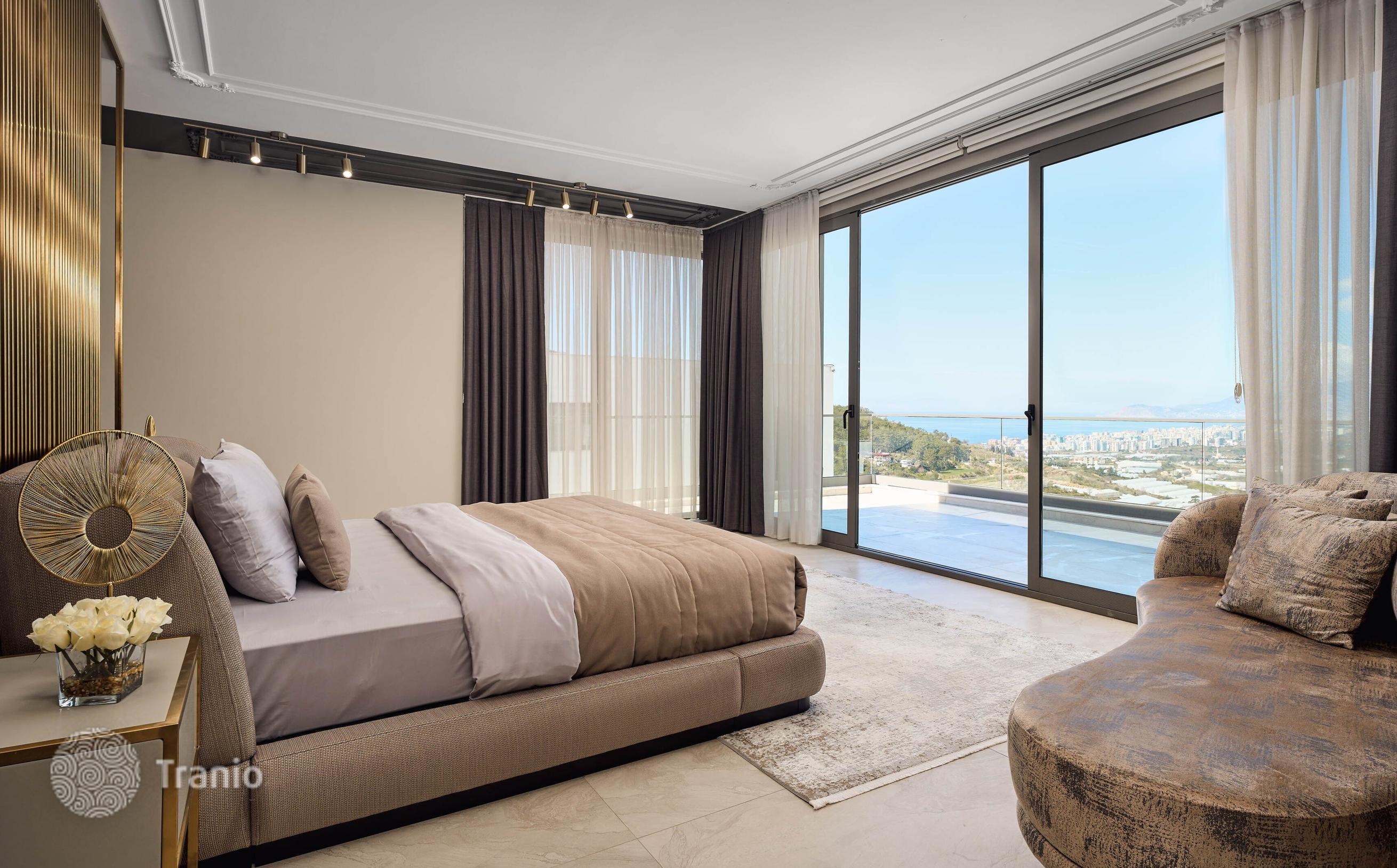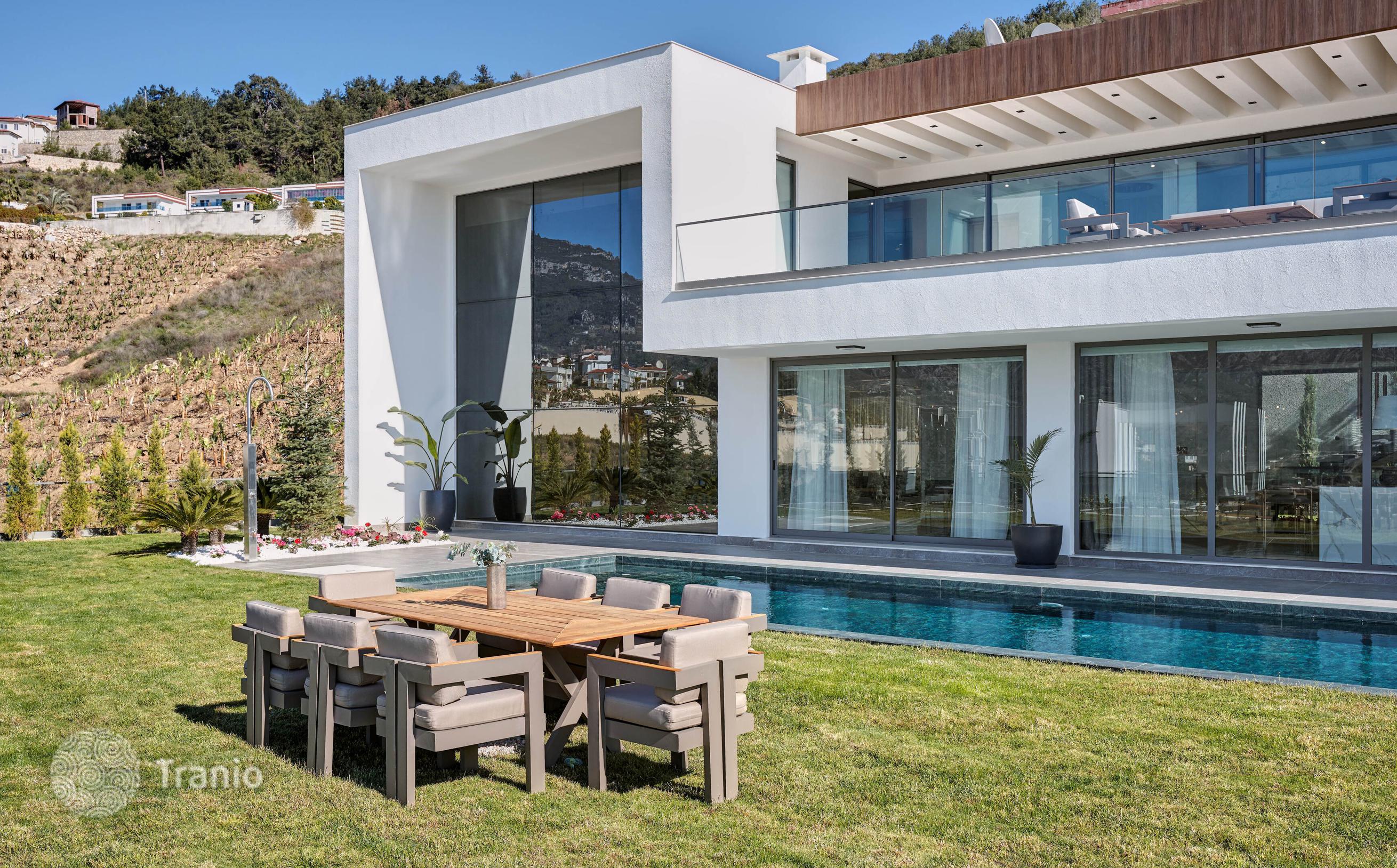 Новый комплекс роскошных вилл с видом на море в Каргыджаке-Алания. Система «умный дом». Частный гараж, сад, бассейн и сауна Построен на участке площадью 4323 м² и состоит из 4 роскошных вилл. Просторные, светлые и комфортабельные виллы оборудованы собственным лифтом, бассейном, садом, гаражом, сауной, подсобными помещениями, спортивным залом и комнатой для хобби. 3х-этажные виллы планировки 4 + 1 площадью 400 м² построены с полным учетом шумо-и влагоизоляции. При строительстве использовались только экологически чистые и высококачественные материалы. Комплекс расположен в идеальном месте, вдали от шума и суеты города, в окружении гор и сосновых лесов. С каждой виллы открывается незабываемый вид на Средиземное море, горы и крепость Алании. На продажу осталась всего одна вилла. Вилла А построена на участке площадью 983 м², общая площадь самой виллы составляет 400 м² Cобственный крытый гараж, бассейн и сад в пределах своего участка. Подвал площадью 216 м²: гараж, тренажерный зал, сауна, массажный кабинет, кладовая, туалет и душ. Первый этаж: 2 спальни (одна с гардеробной и ванной комнатой), ванная комната, просторная гостиная, совмещенная с кухней и кладовой. Второй этаж: 2 спальни, каждая с ванной комнатой и просторная терраса.